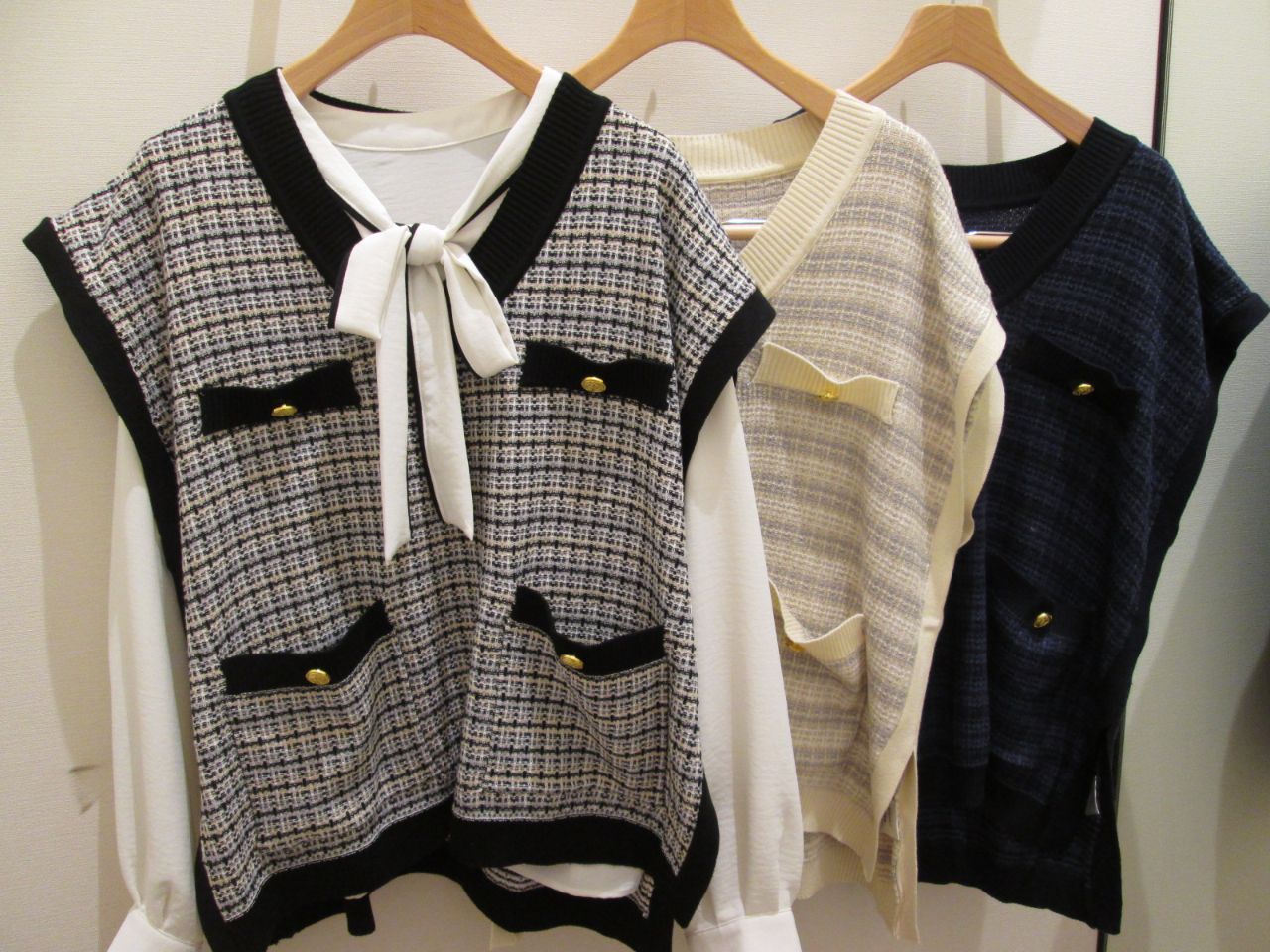 今年もまだまだ人気のニットベストにデザイン性の高い新作が仲間入りです♪