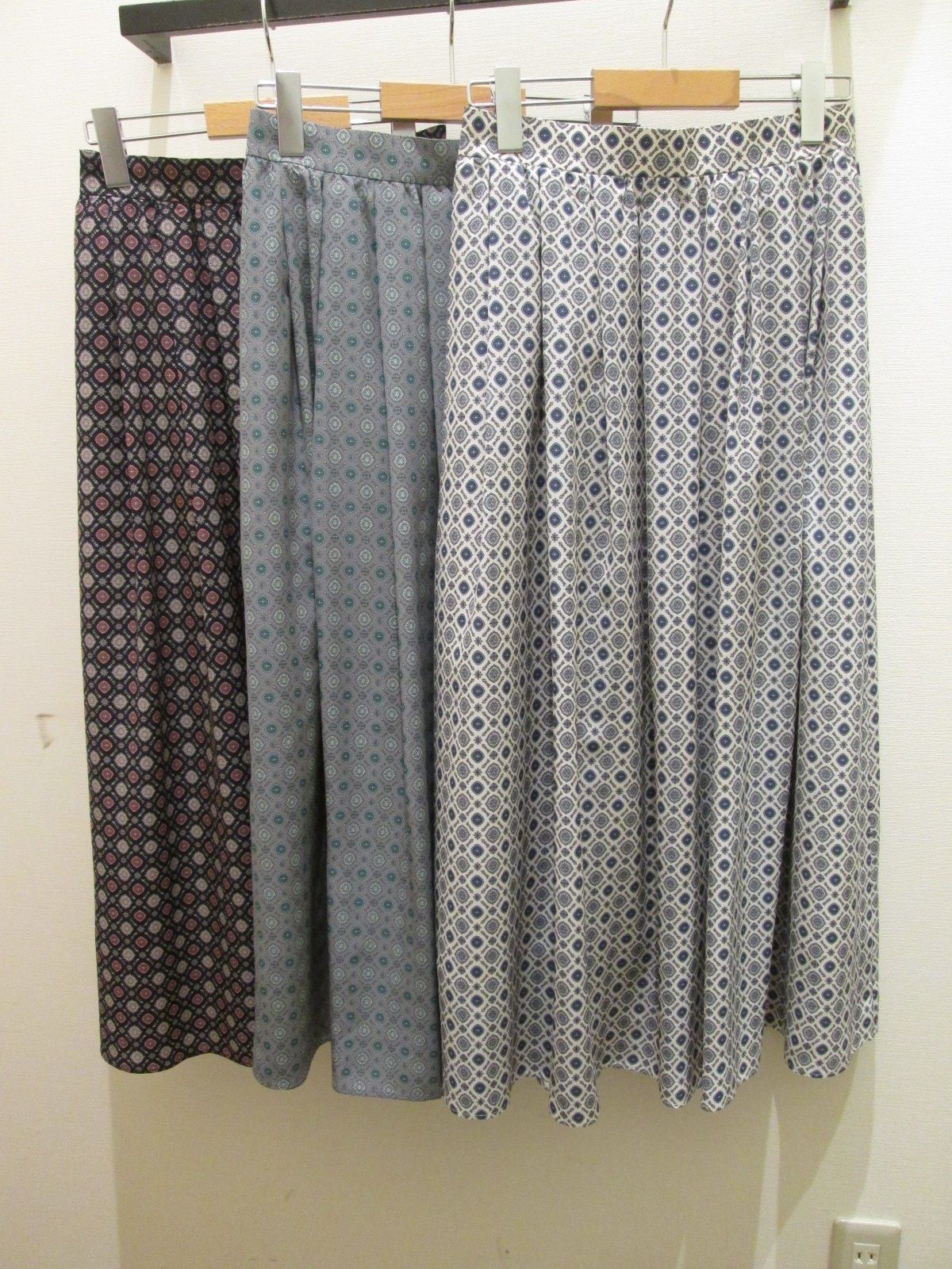 「デシン小紋柄ギャザータックスカート」