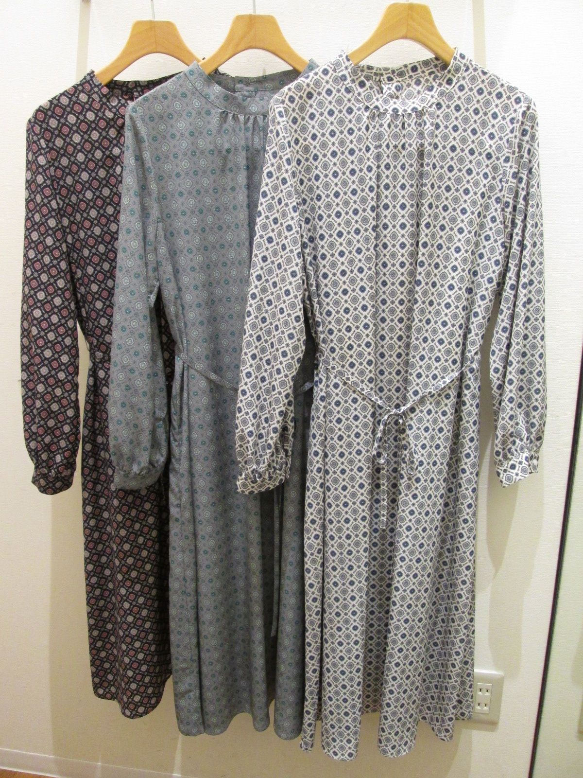 「デシン小紋柄ハイネックワンピース」