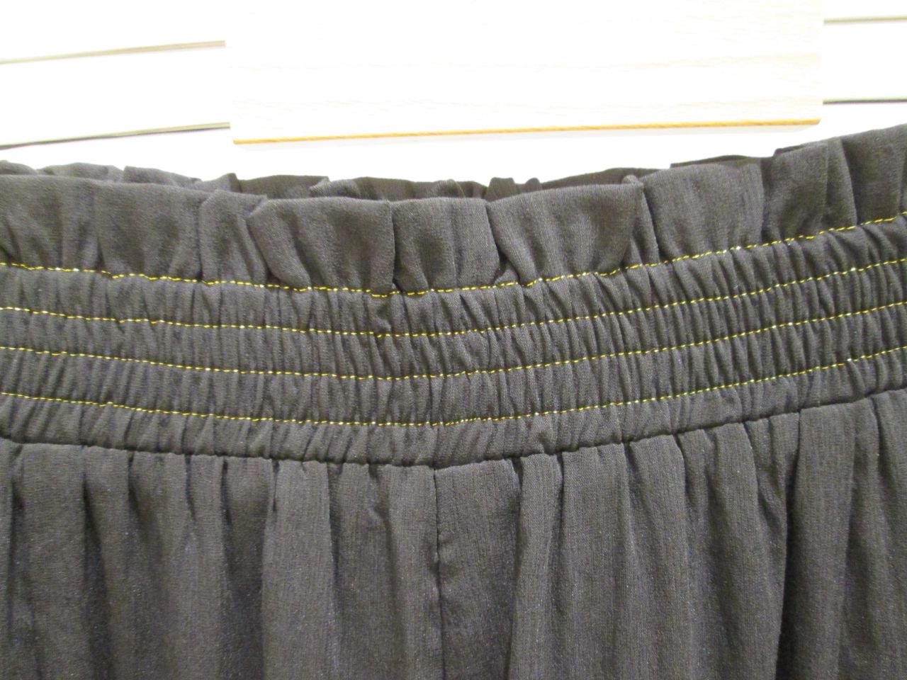 ウエストのゴム部分のステッチにラメ糸を使用しており、華やかに❀