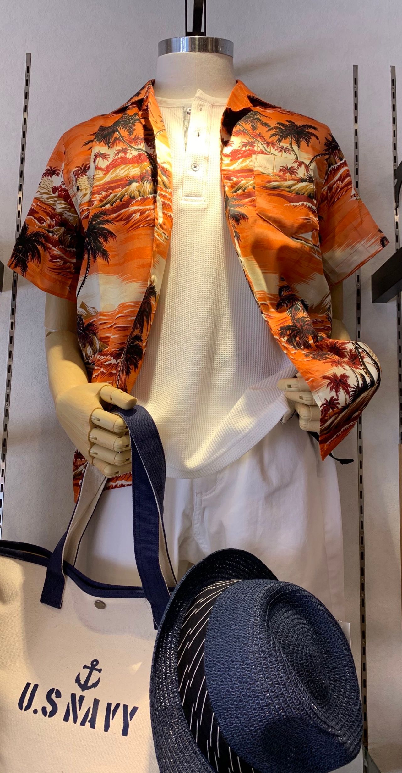 夏らしいハイビスカス柄のオープンカラーシャツです。
