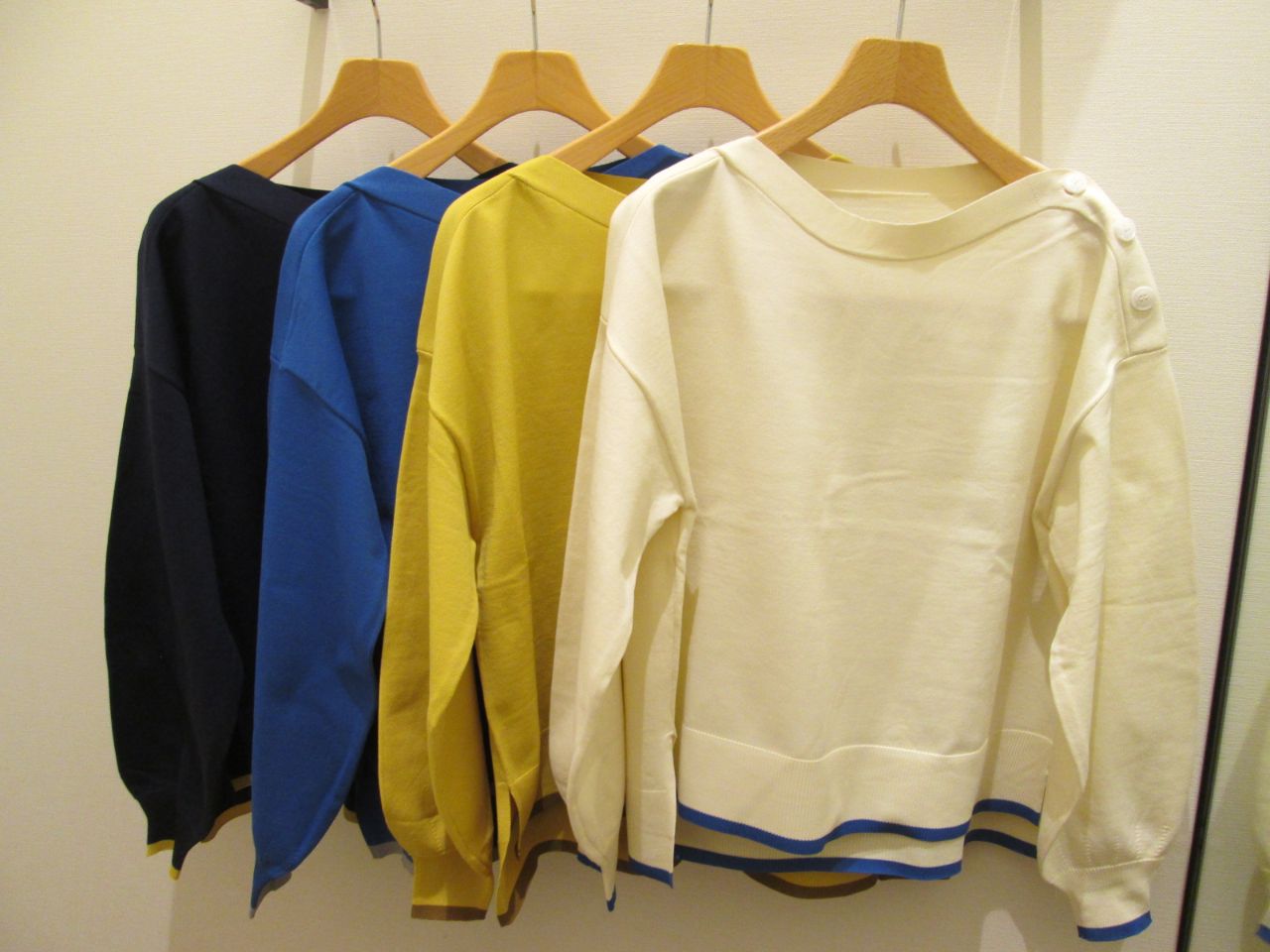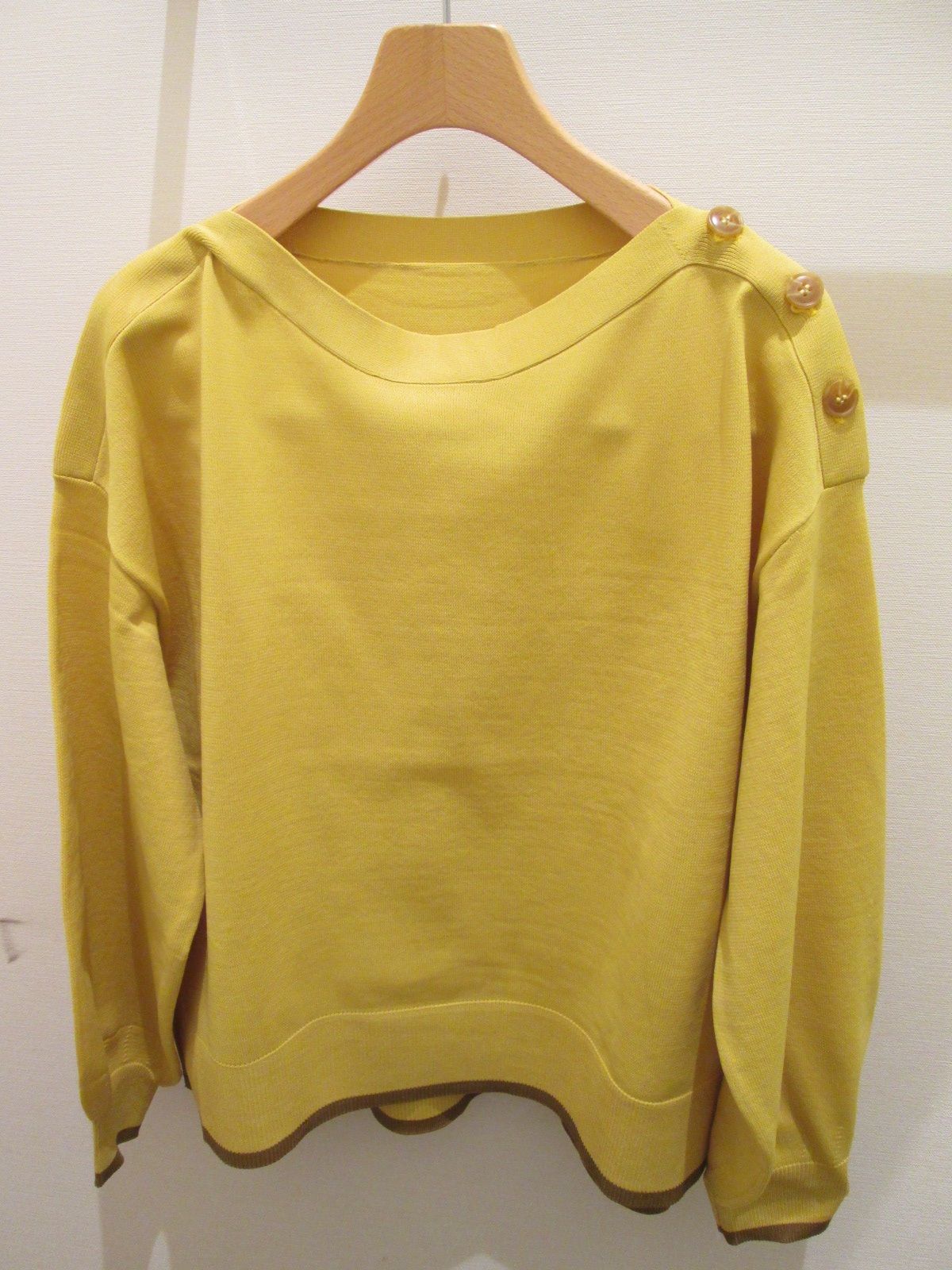 「肩ボタン裾配色ニット」