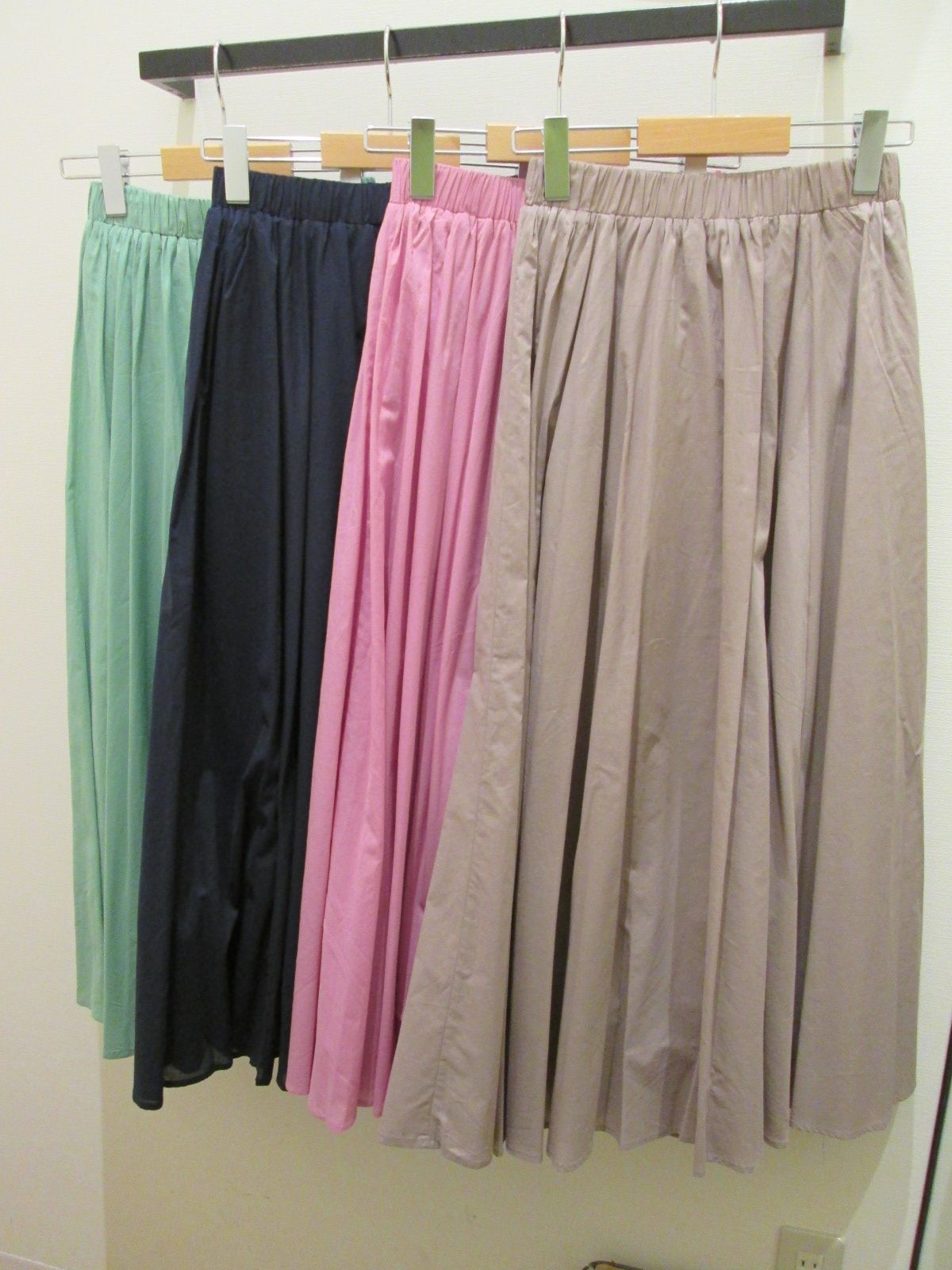 本日は、新入荷した鮮やかカラーのスカートをご紹介いたします。