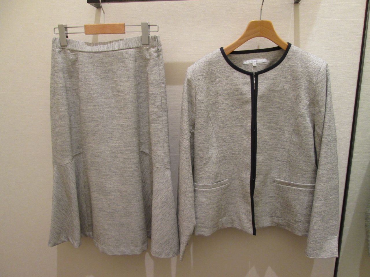ジャケットはパイピングがアクセントになっているノーカラータイプです。