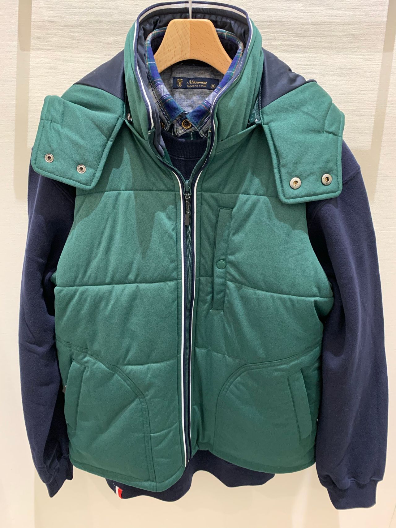 フードも取り外しが可能ですので、中にパーカーやフード付きのトレーナーなどを着た上から羽織ったり等、幅広い着こなしに対応できます!