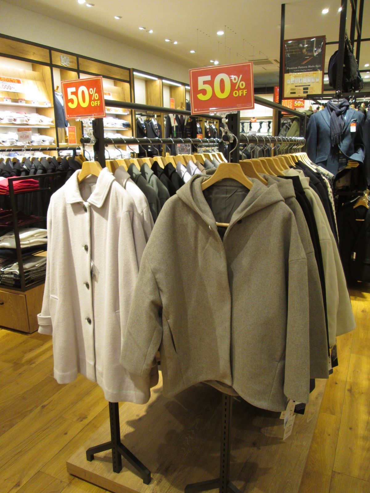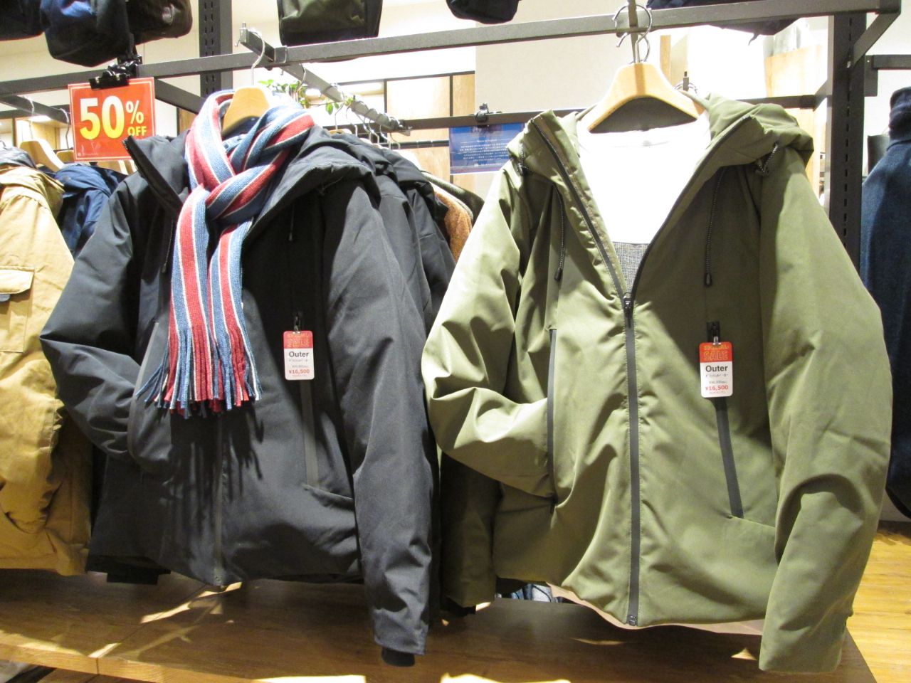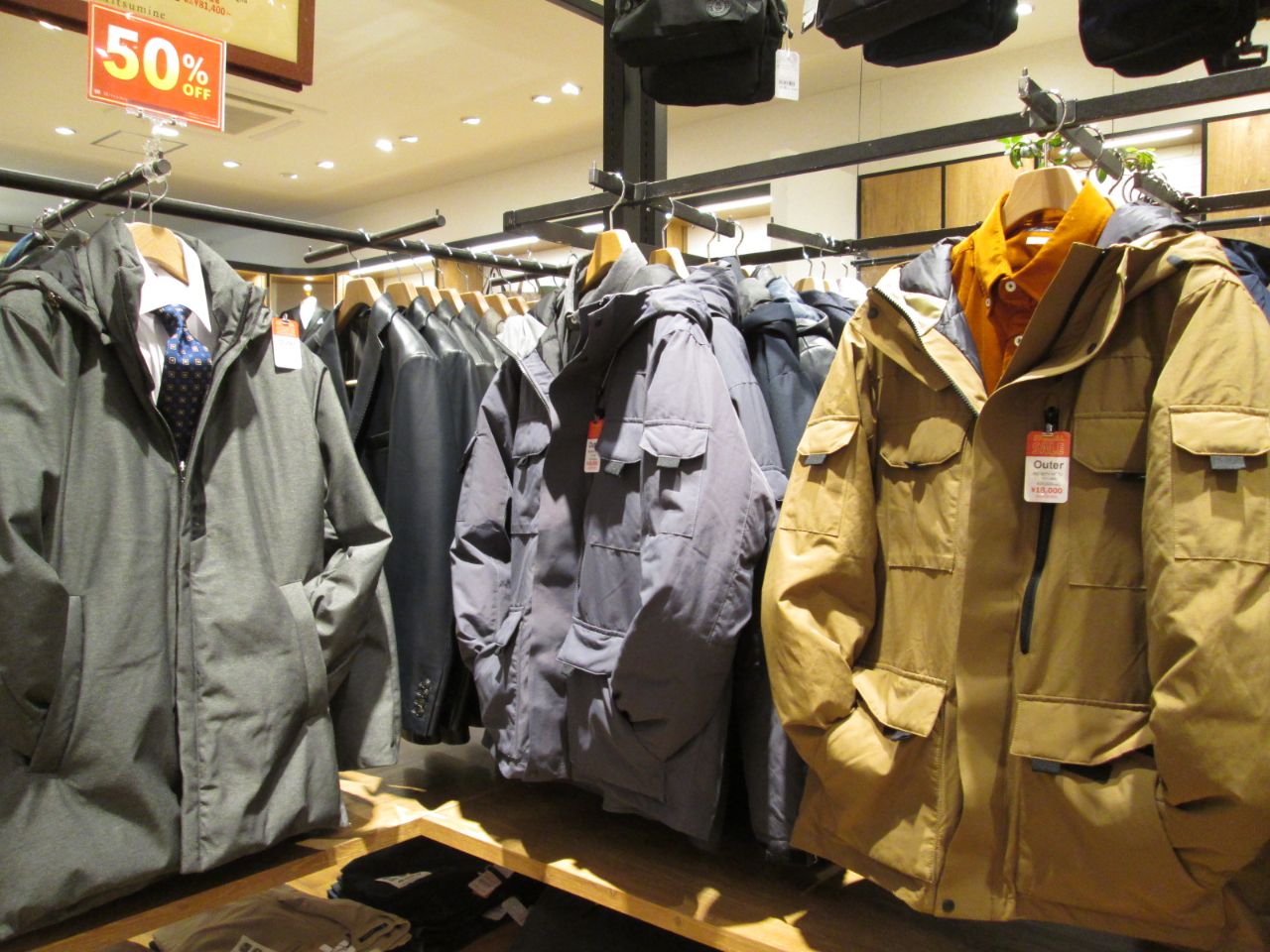メンズ、レディース共にアウター・コート類が非常にお値打ちになっております。