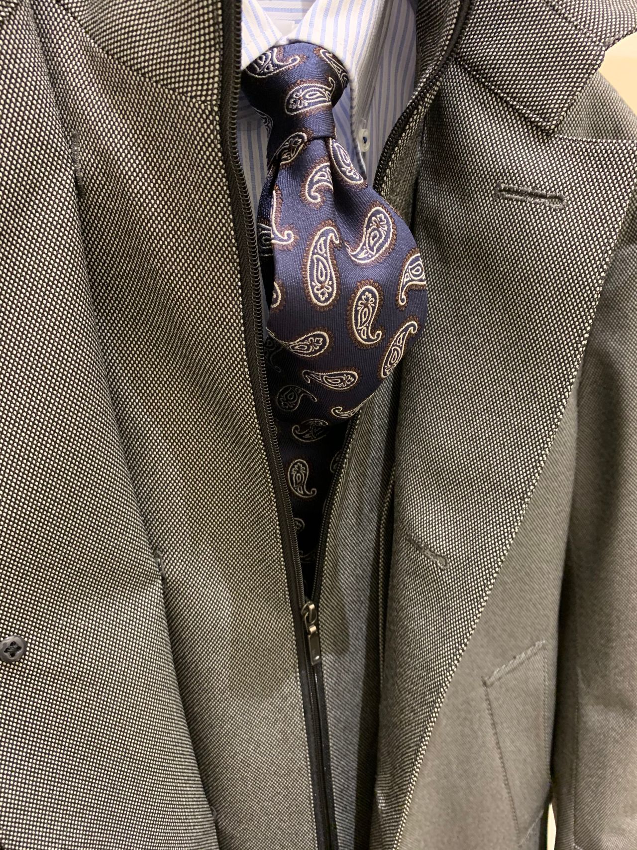 バーズアイ柄で色も非常に合わせやすいグレーになっており、オススメのコートです!