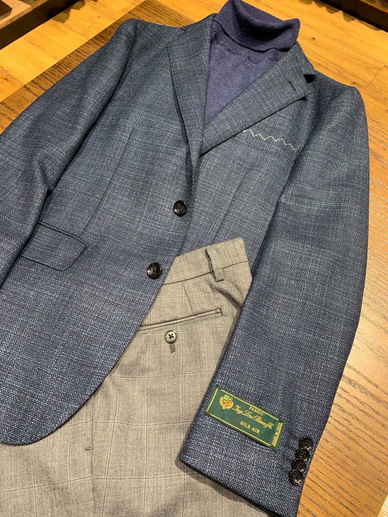 ウール・シルク・カシミヤの3者混生地とウール・シルクの2者混と2種類の生地でご用意しています。
