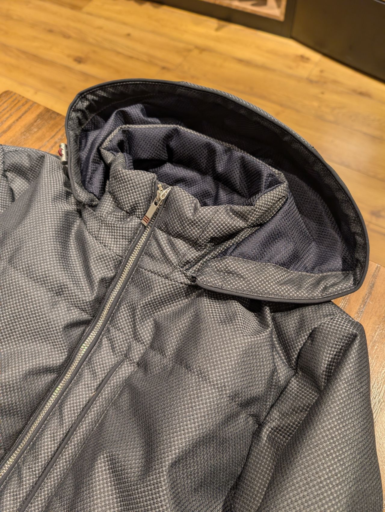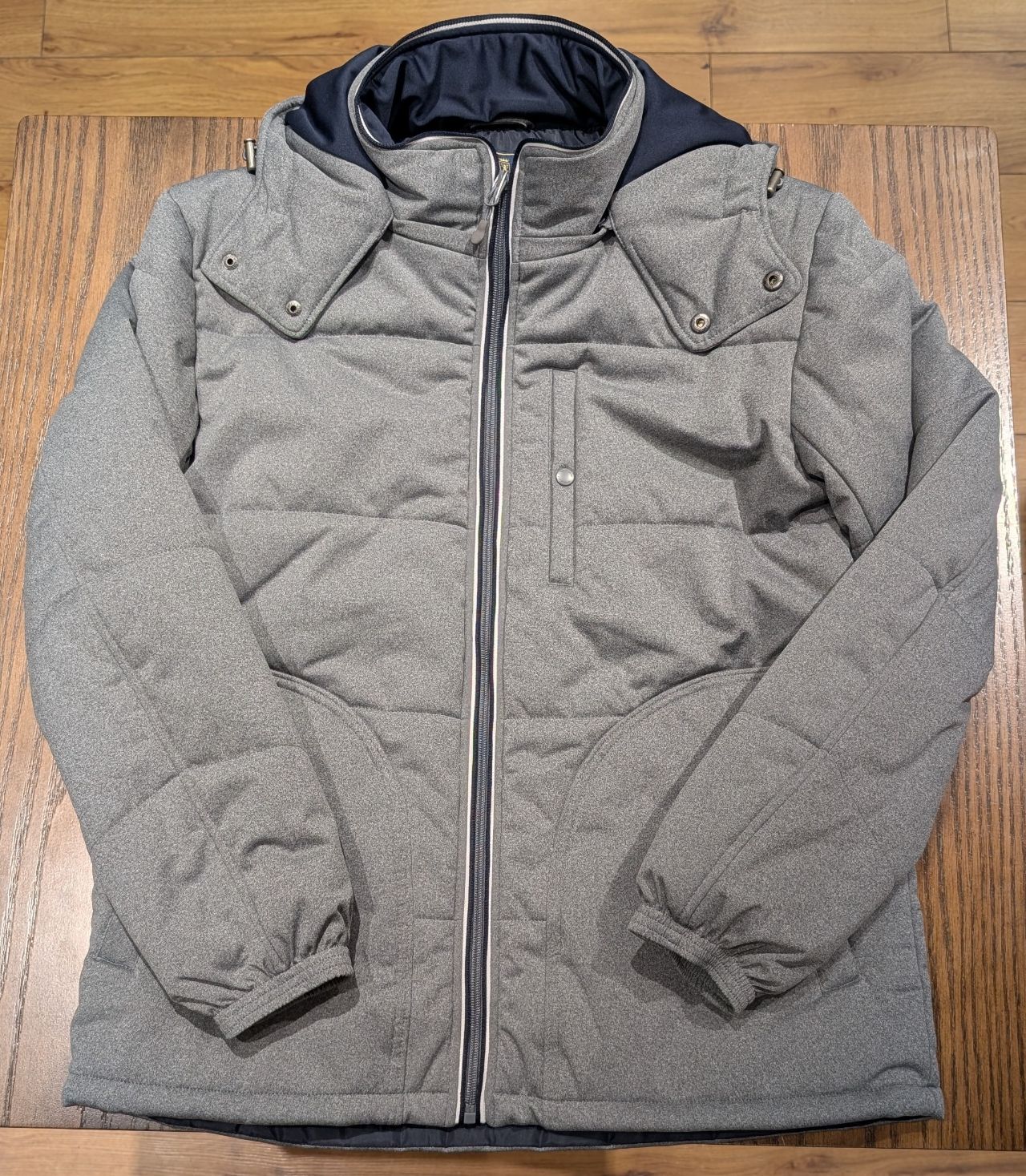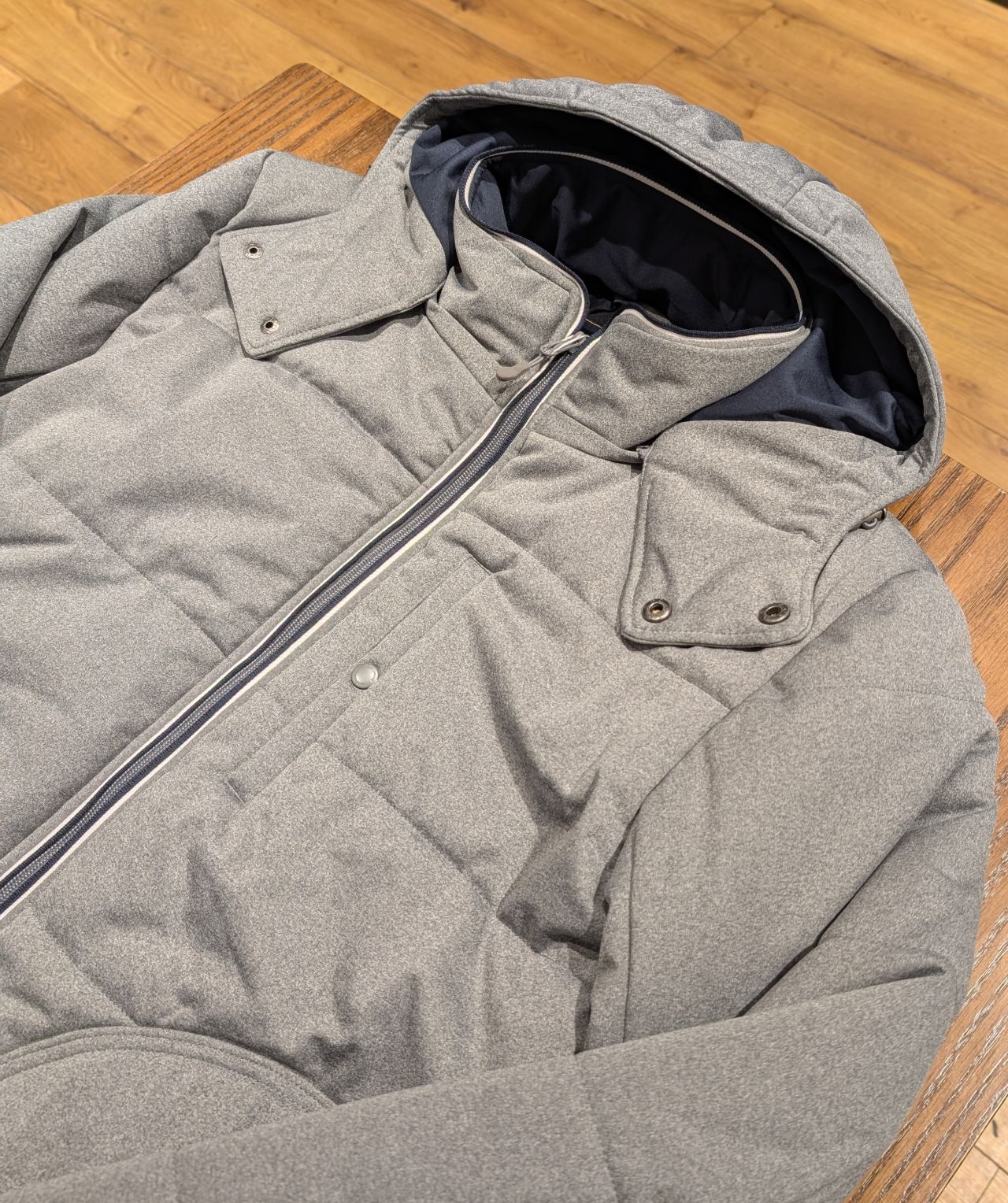 中綿パイピングジャケットと同様フードも着脱可能です。