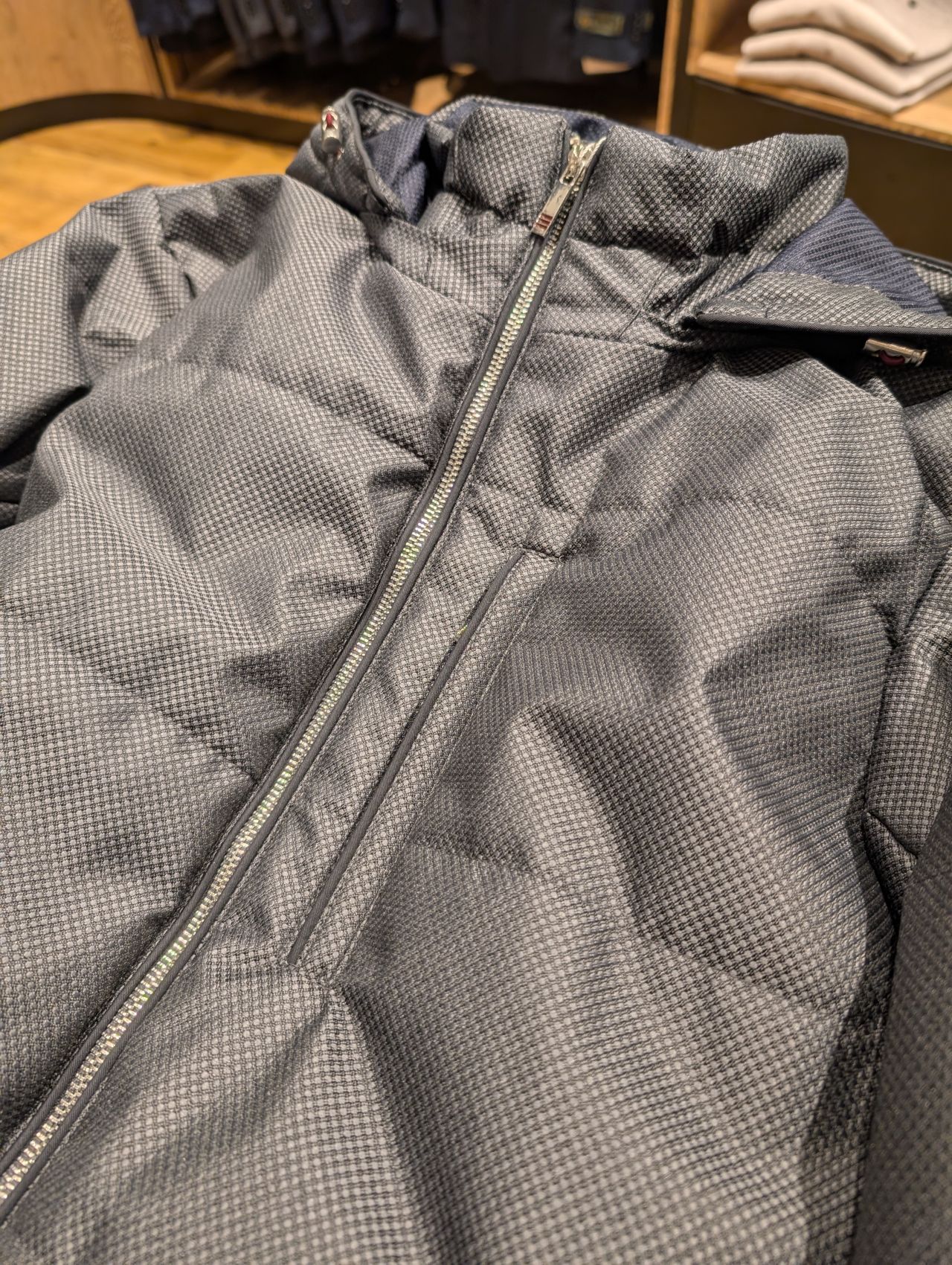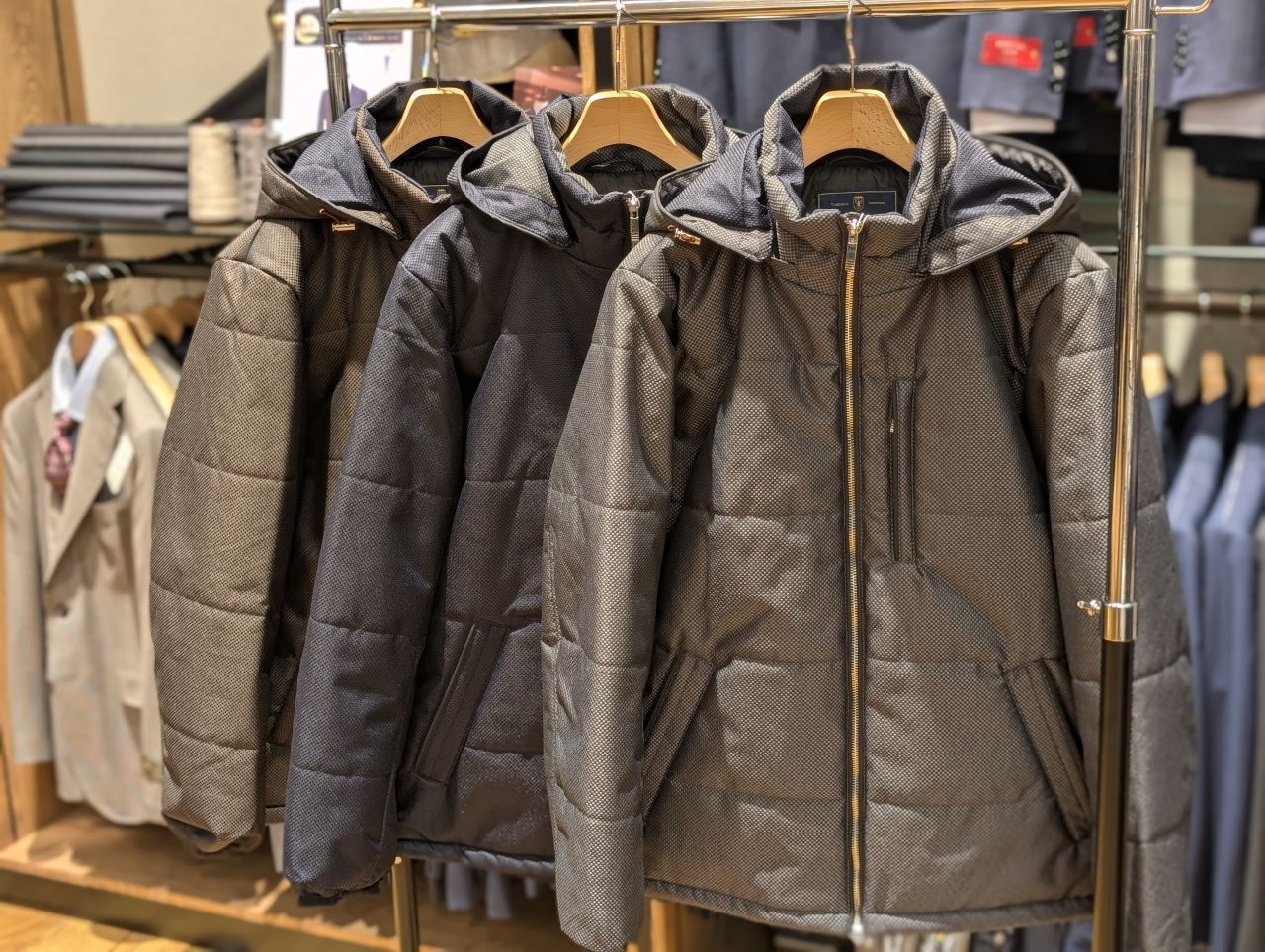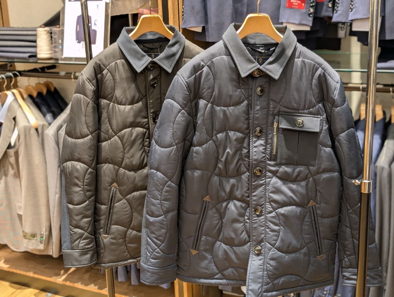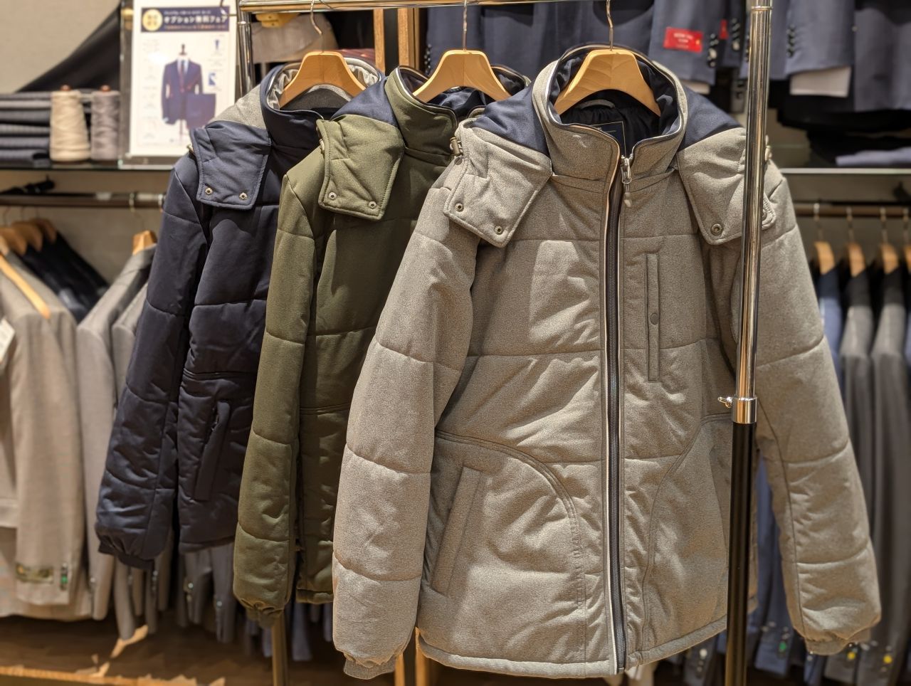 他にもダウンやジャケットの上から着用できる丈の商品もございますので