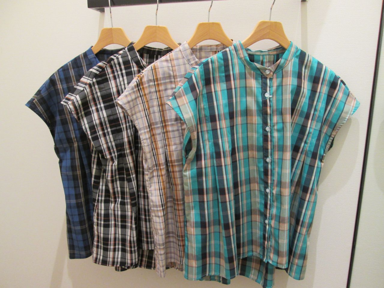 鮮やかなブルーやグリーン系のチェックや、着回しのしやすいブラック、ベージュのチェックと全4色展開です。