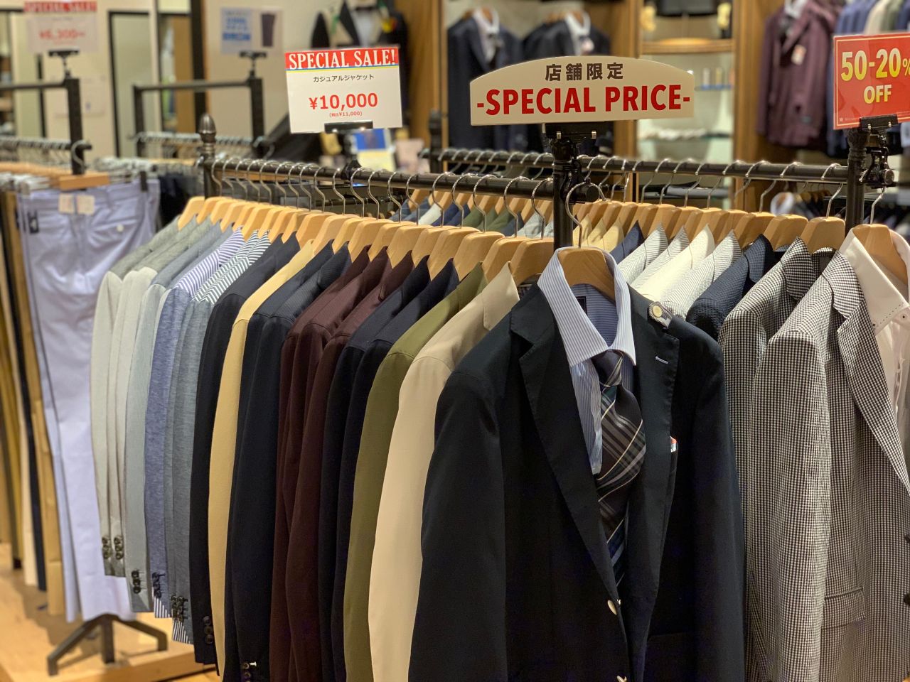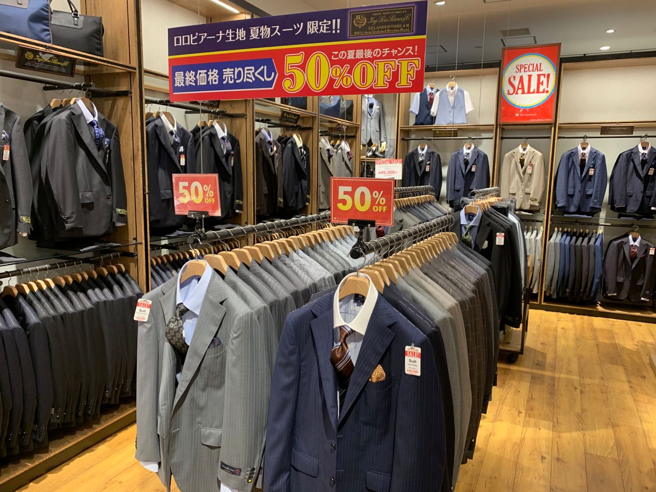 サイズが合えば間違いなし!のインポート生地スーツ50%OFFセールです。