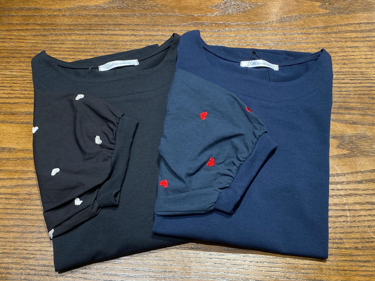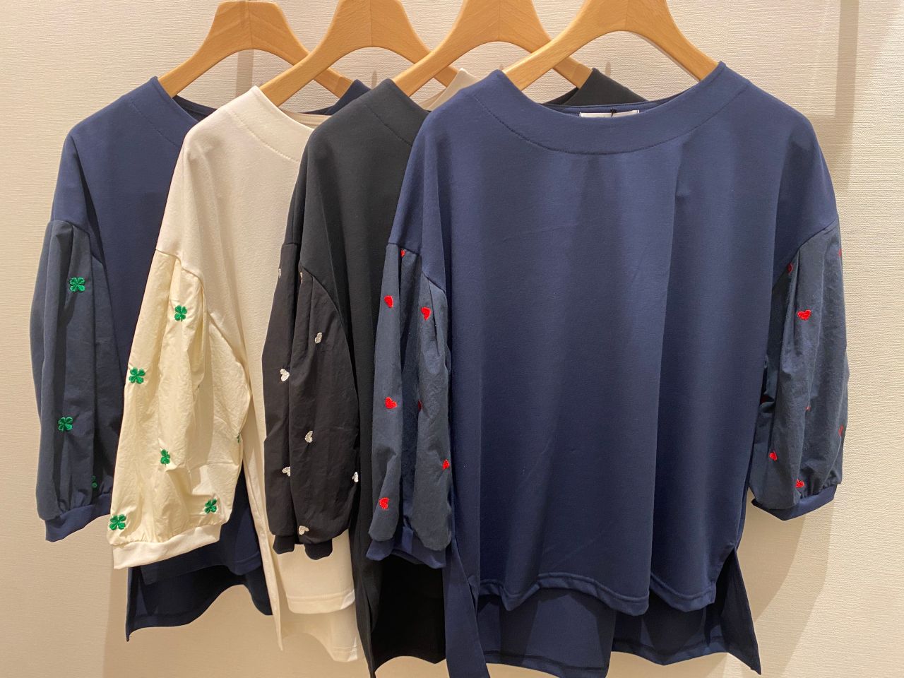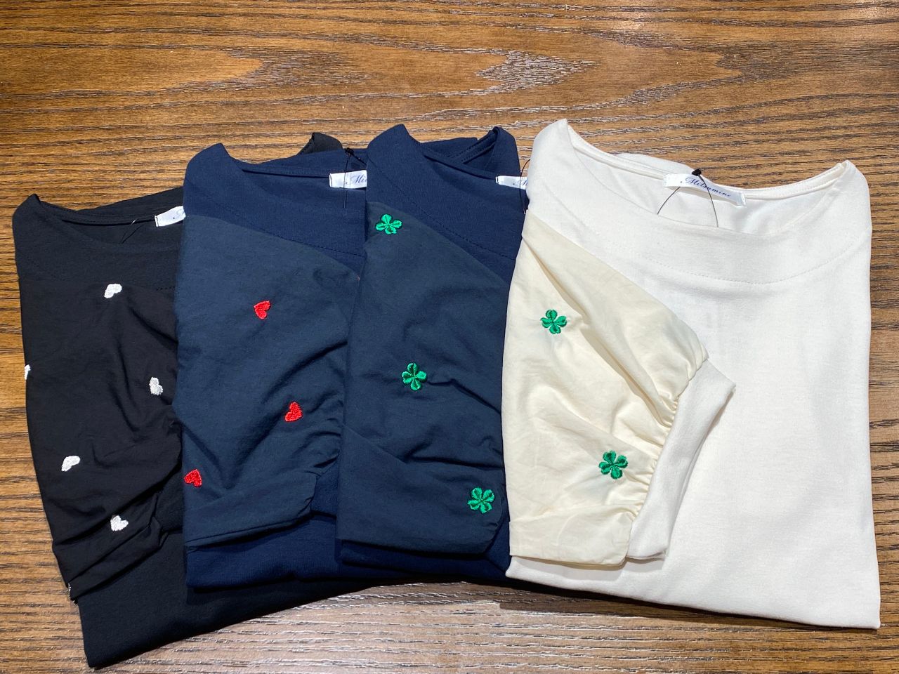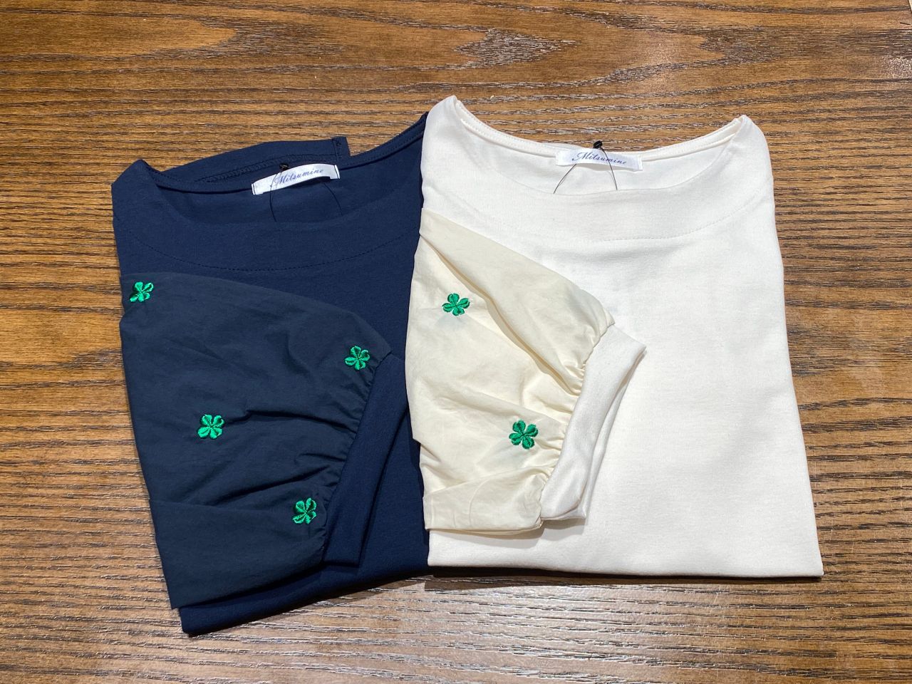 袖に施されたクローバー・ハートの刺繍がポイントです!