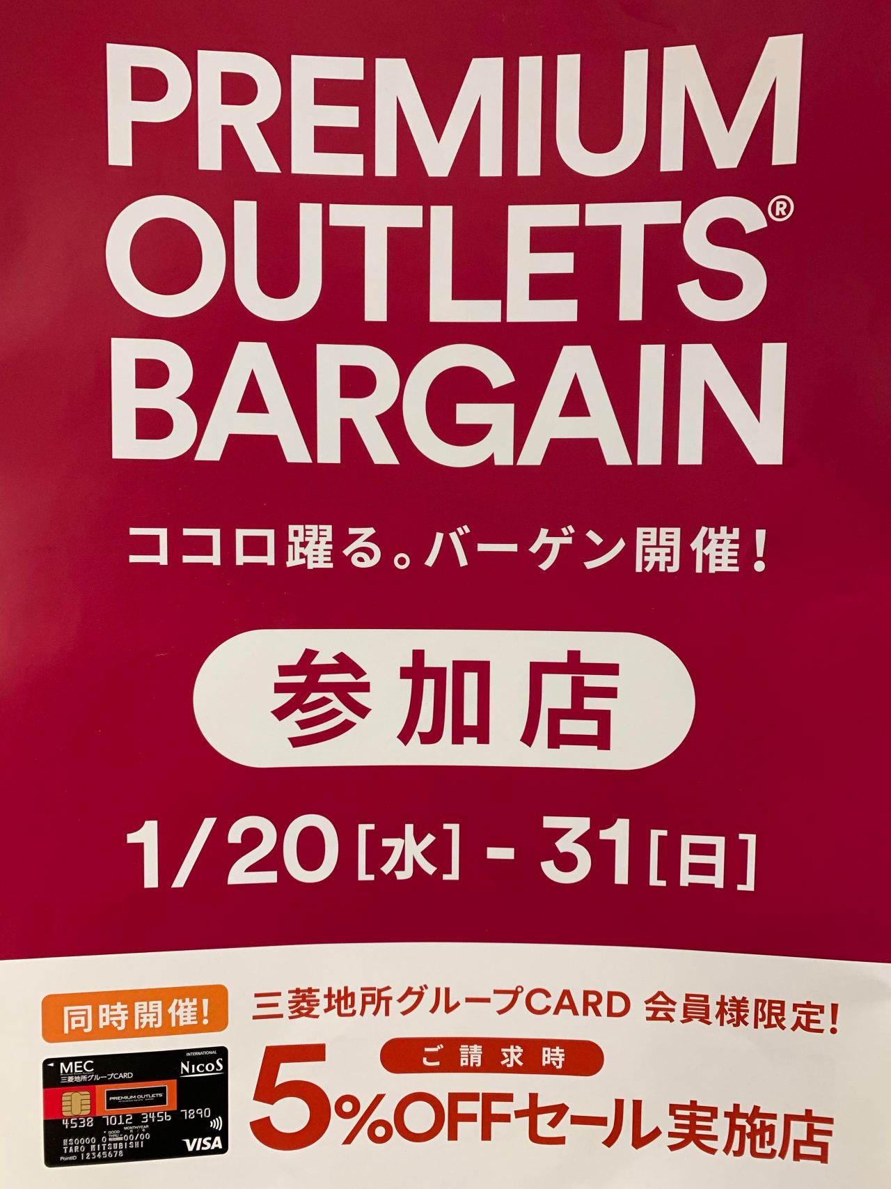 ポスターにもあるように期間中は「三菱地所グループカード」でお支払い頂くと請求時に5%OFFになるイベントを同時開催しますので、併せてご利用下さい!