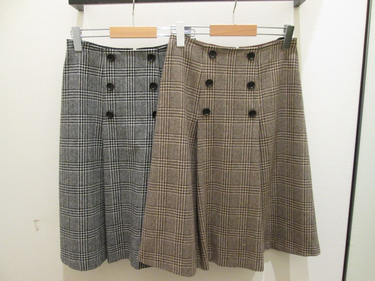 ⑥ウールグレンチェックボタン付タックスカート