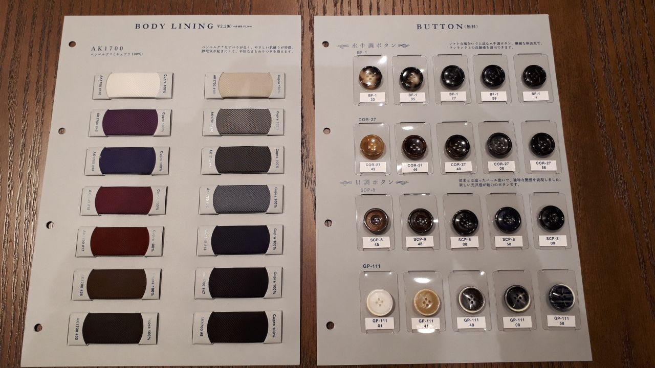 裏地 ボタンも選べます。