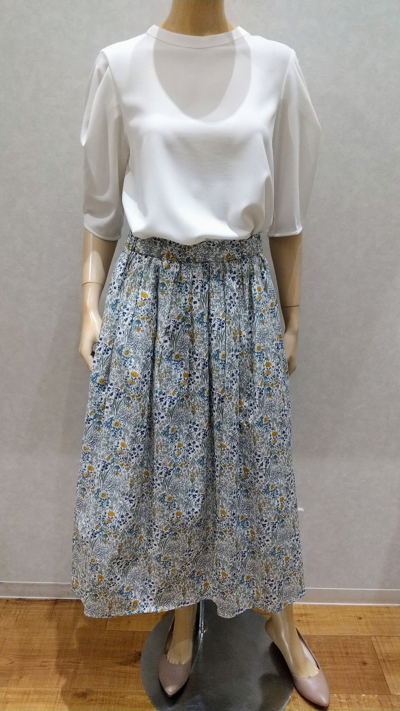 さらっと花柄スカートで