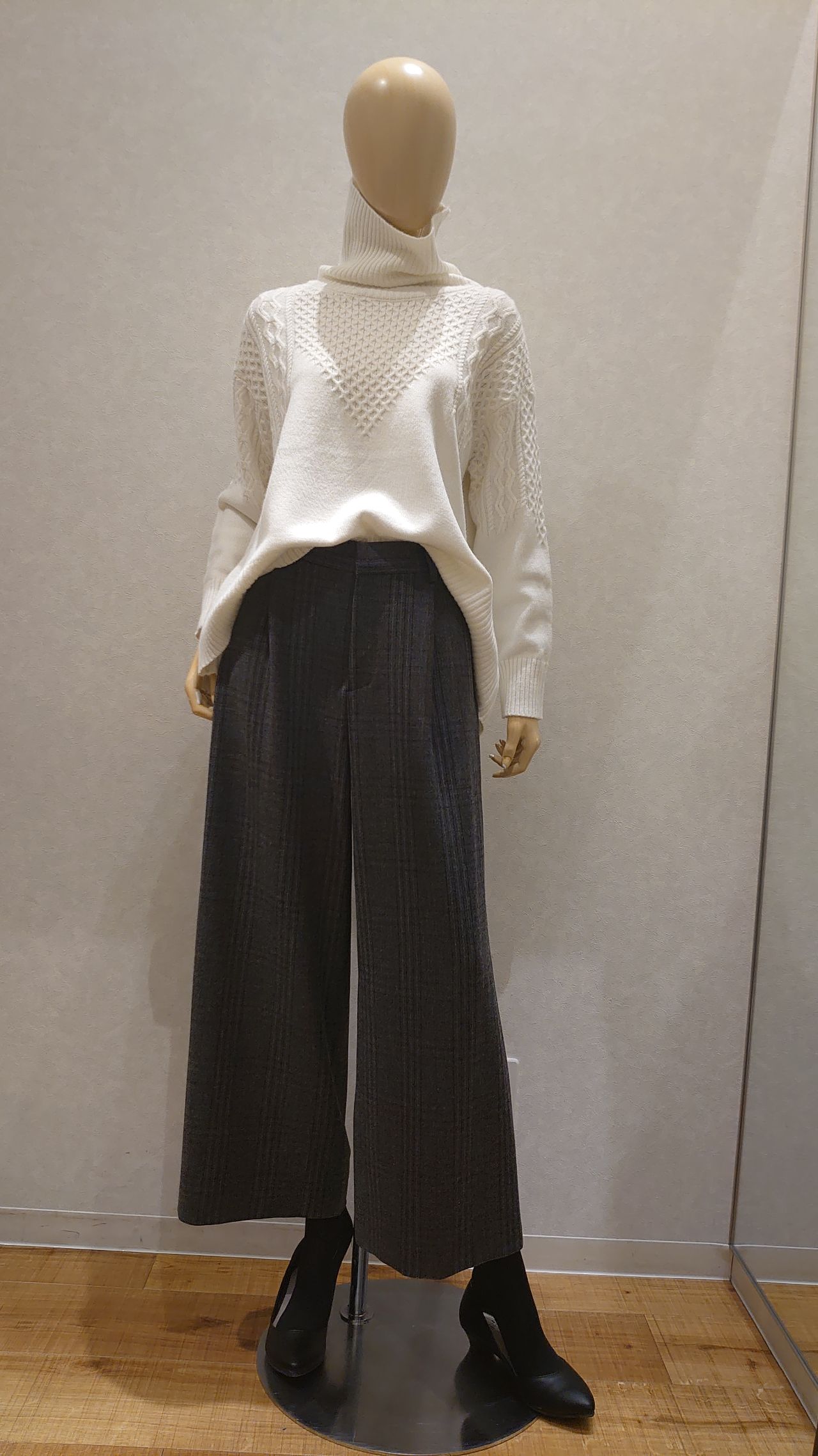 ザックリとしたタートルニットをウエストインして合わせてみました。