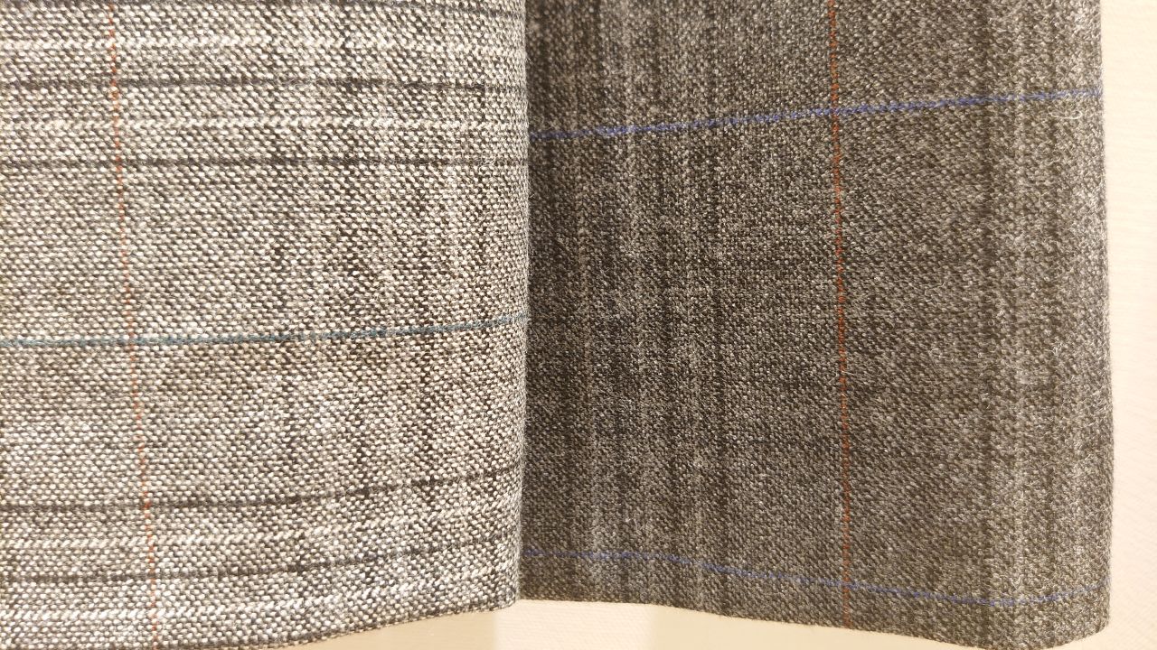 ウール混素材パンツでどちらもオレンジとブルーのラインが入ってますので暖かみのある落ち着いた印象になります♪
