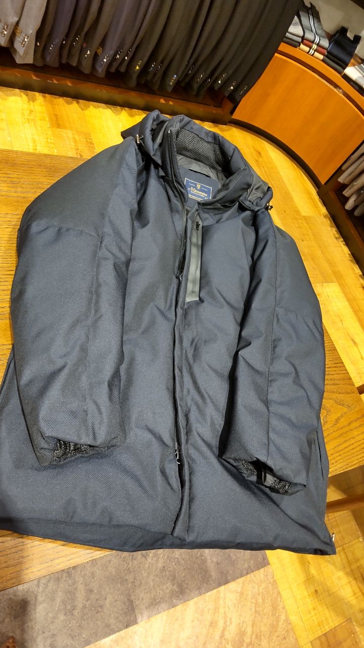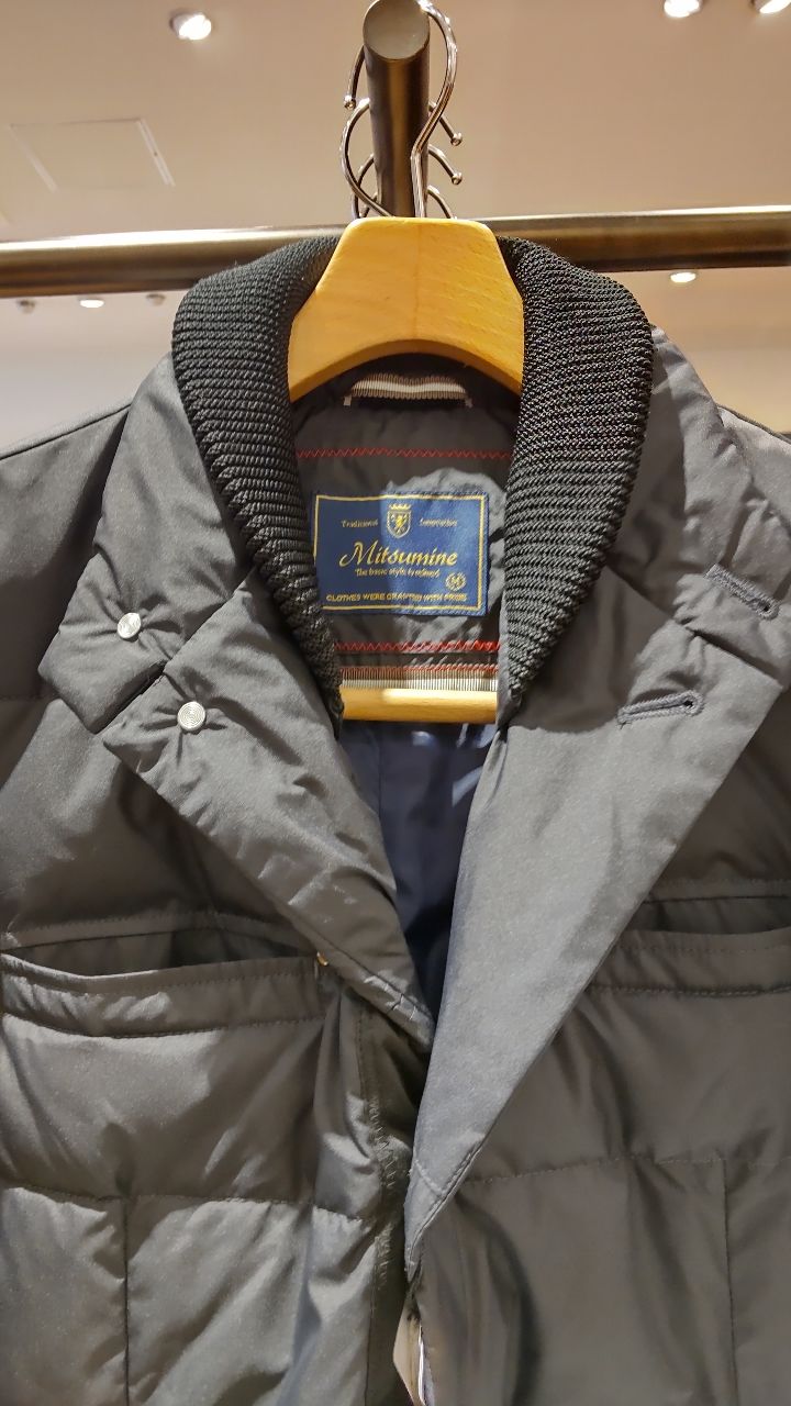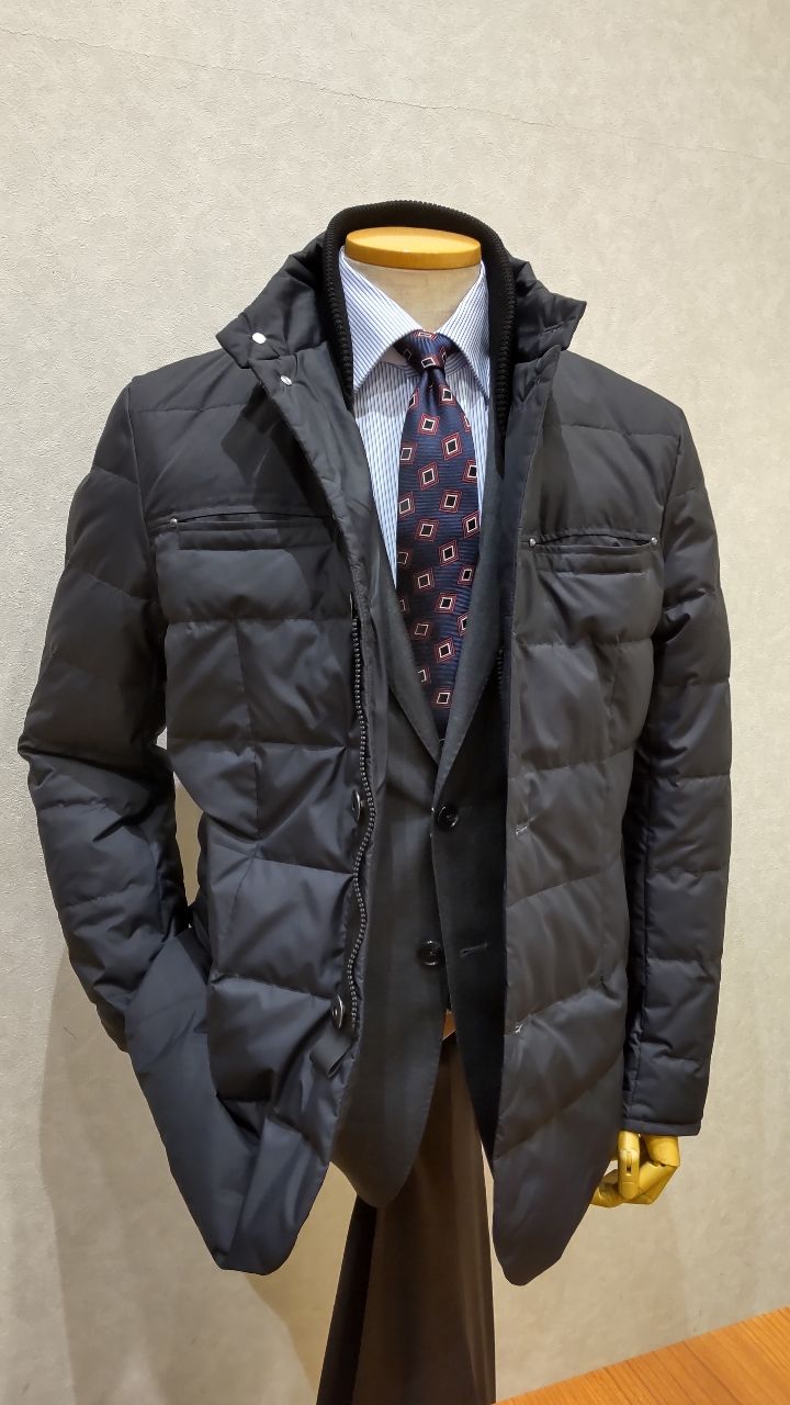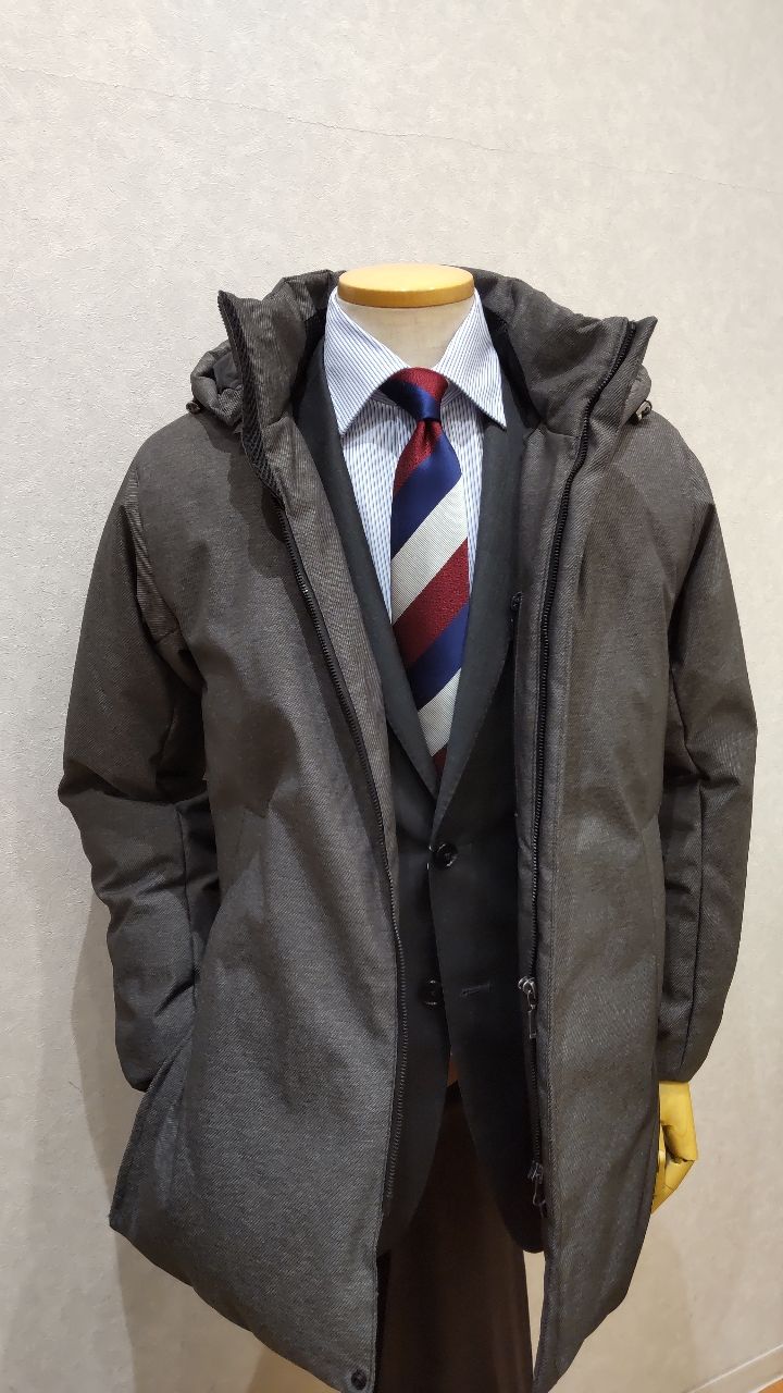 スーツスタイルにも、着用できる温かいダウンコートを2着ご紹介したいと思います。