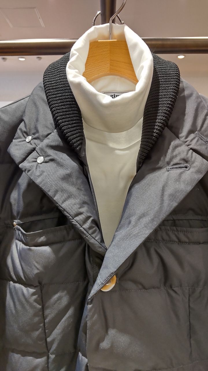 襟を折ってジャケット風にも着用できるスタイルで、タートルネックとの相性もいいです。