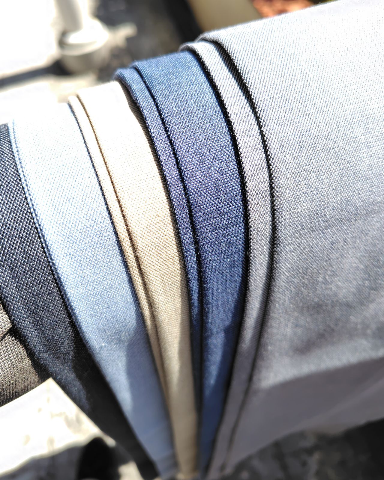 太陽の自然光に当てると、素材感がわかります。