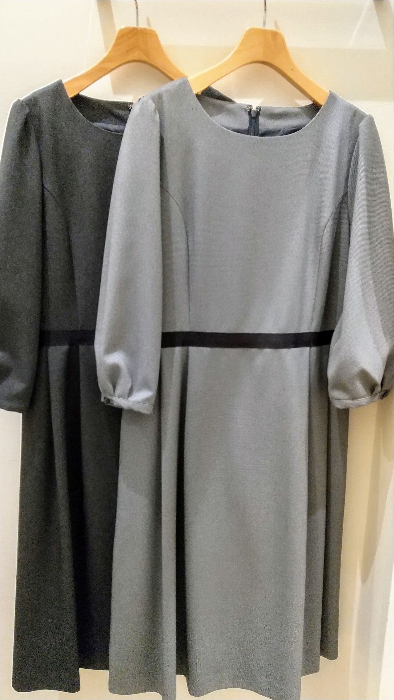 こちらのワンピース、無地に見えますが実はピンヘッドの織柄なんです。