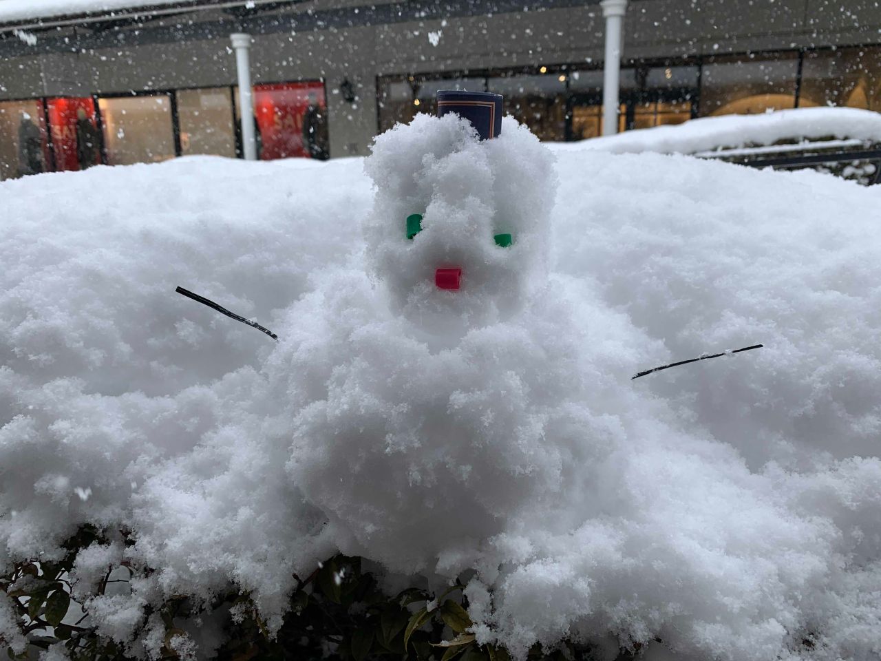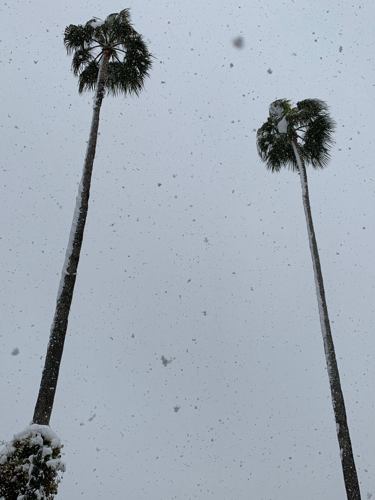 久々の大雪で椰子の木も寒さに