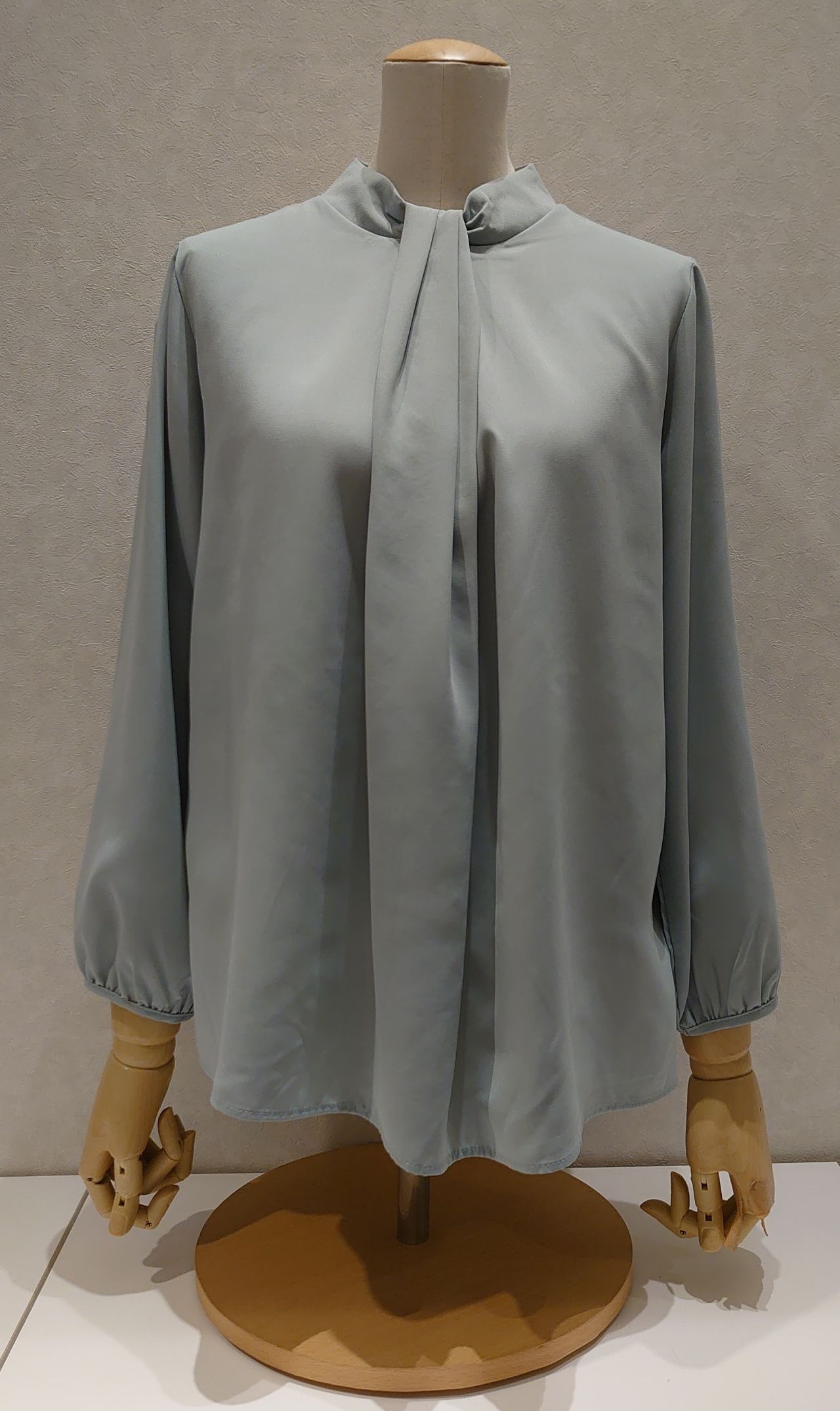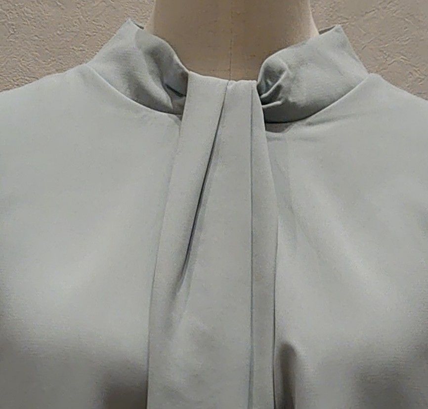 とても綺麗な春色のグリーンで首元がリボン風になっております。