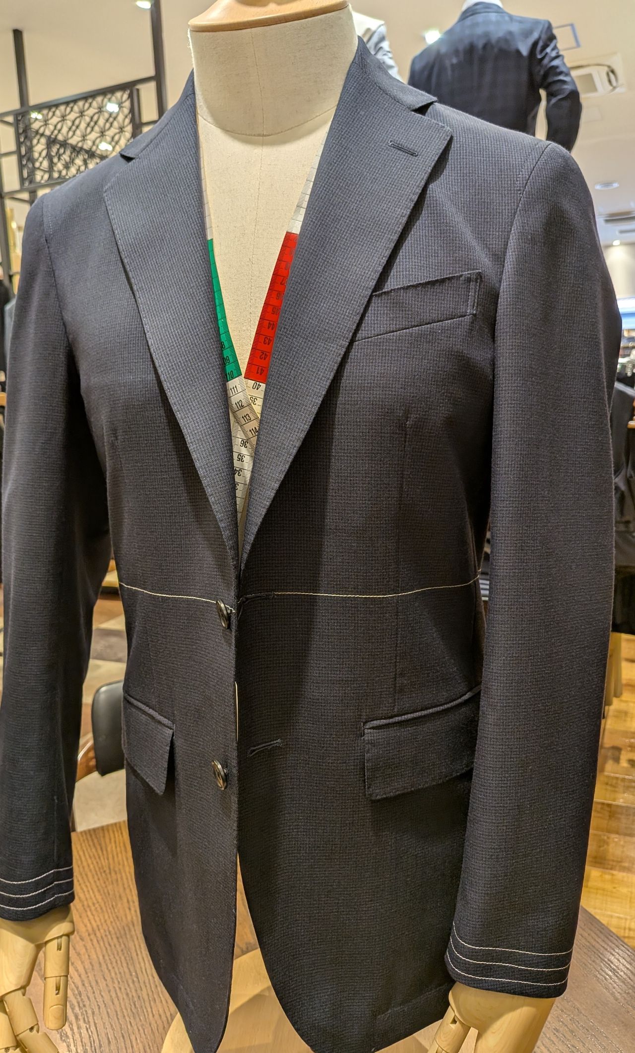 生地は、ご家庭でお手入れ可能なウォッシャブル、ストレッチ素材、サマーウール100%と