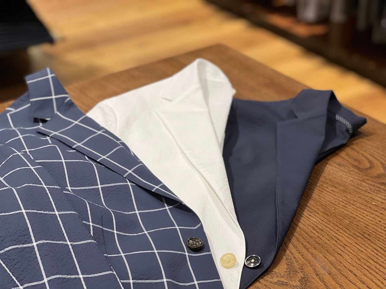 左から、ウィンドペン柄、ホワイトサッカー地、