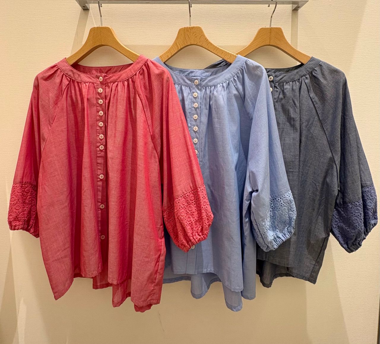 この他にもボリューム袖や半袖のブラウスも続々と入荷します。