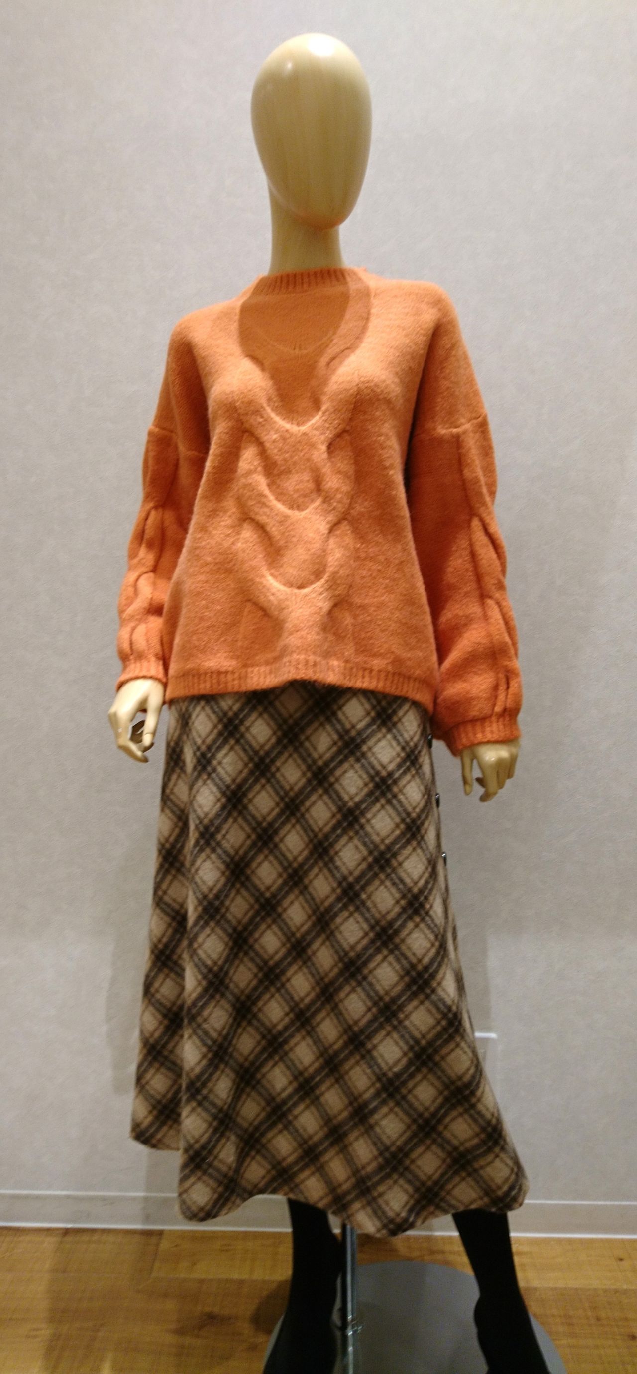 鮮やかなオレンジが目を引く、寒い冬にピッタリなコーディネートです