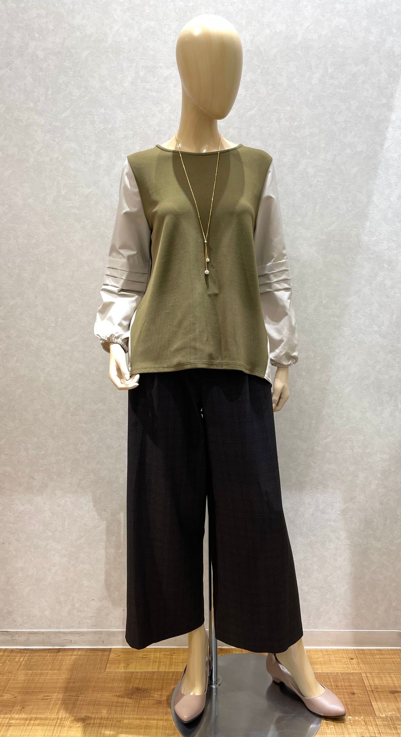 こちらは1枚でレイヤード風の着こなしになりますし、