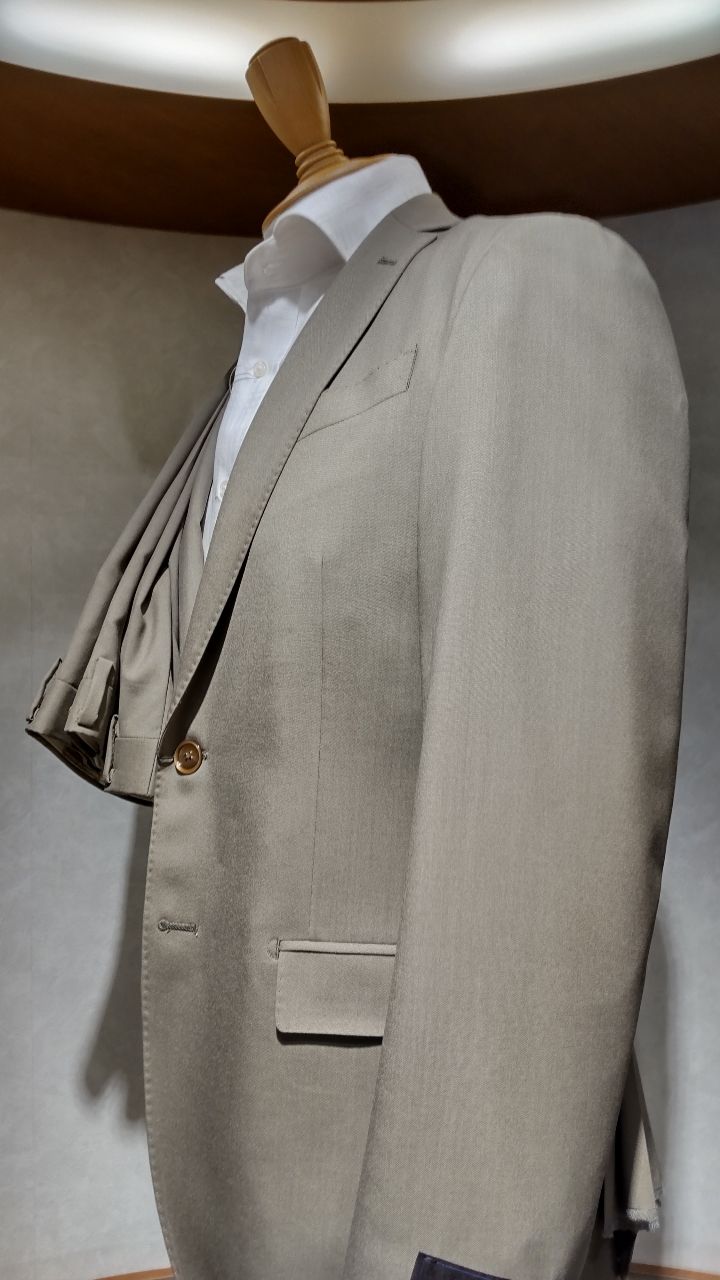 春に向けて、爽やかな印象と落ち着いた安心感も与えてくれるベージュ系のスーツはオススメです。