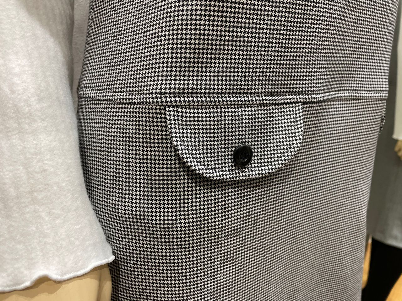 総丈は105cmで、前身頃のサイドにはボタン付きフラップもございます。