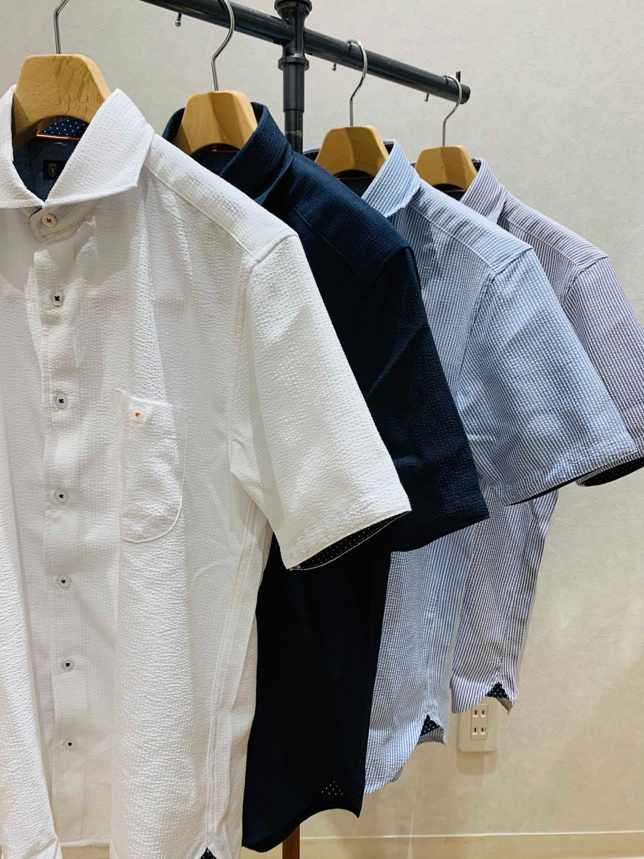 シアサッカー半袖シャツ