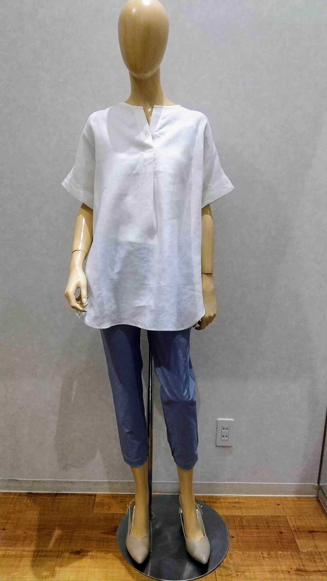 麻素材のブラウスを