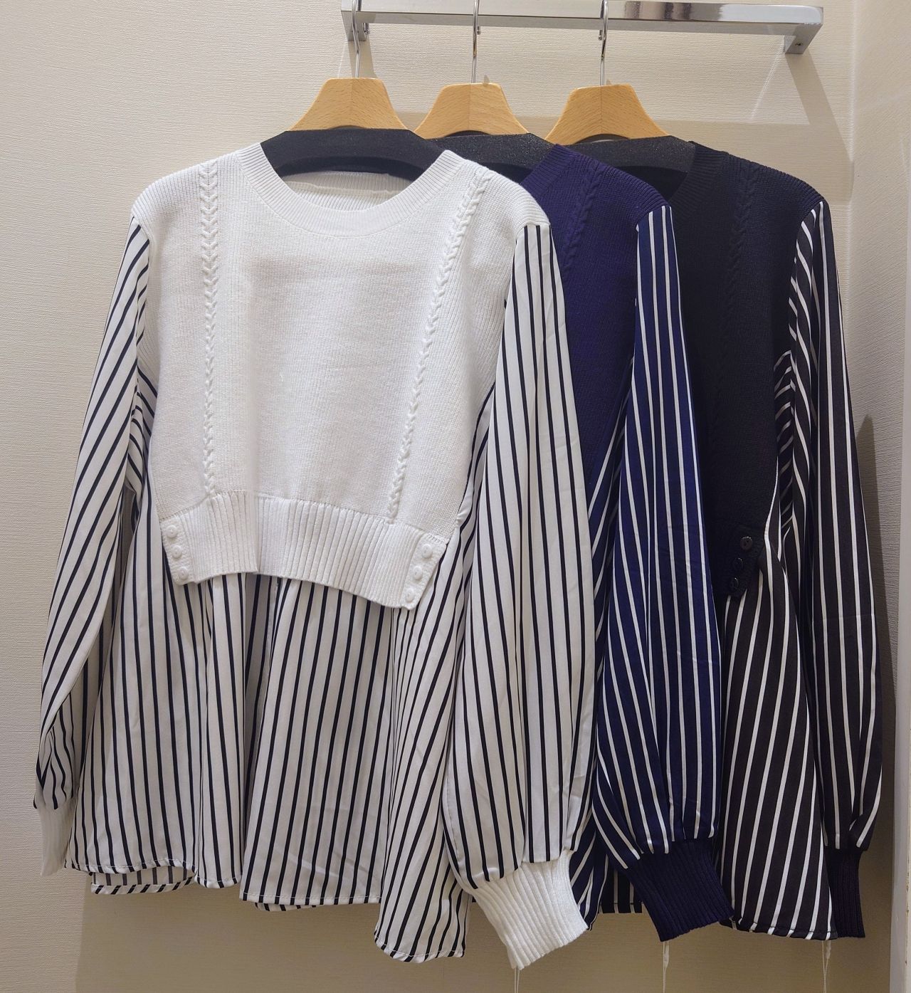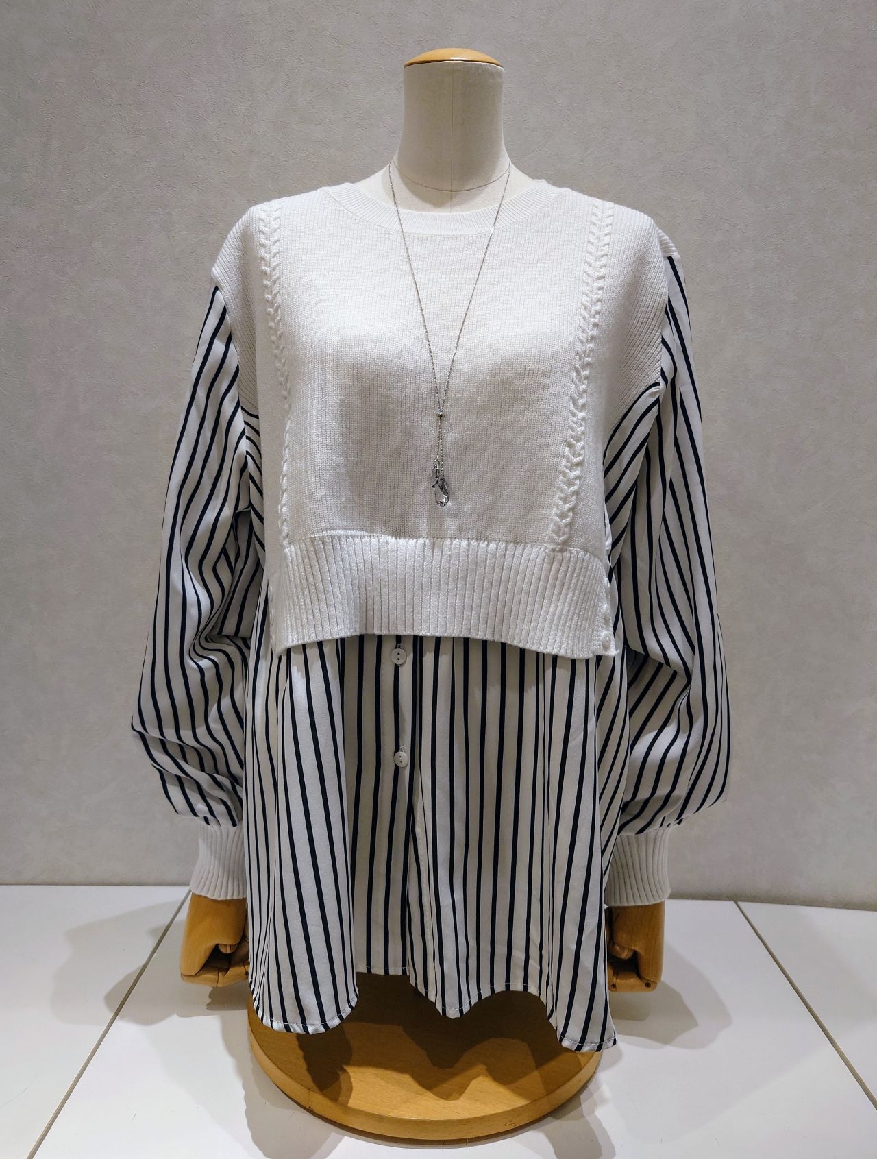 ストライプシャツドッキングニット
