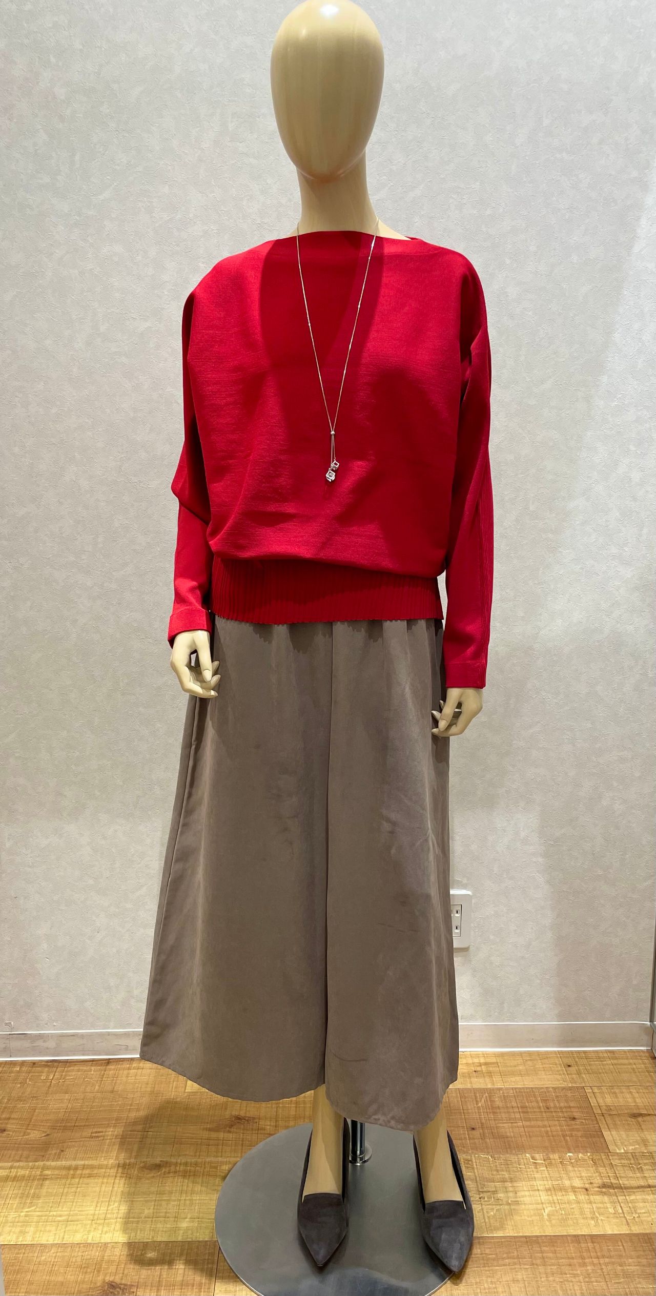 シンプルですけど、赤とベージュで華やかなコーディネートにしてみました♪