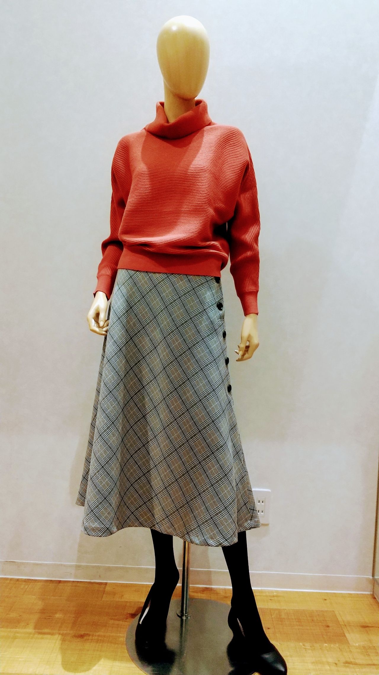 ボリュームのあるスカートやワイドパンツに合わせていただくと、スッキリ着こなしていただけると思います☆