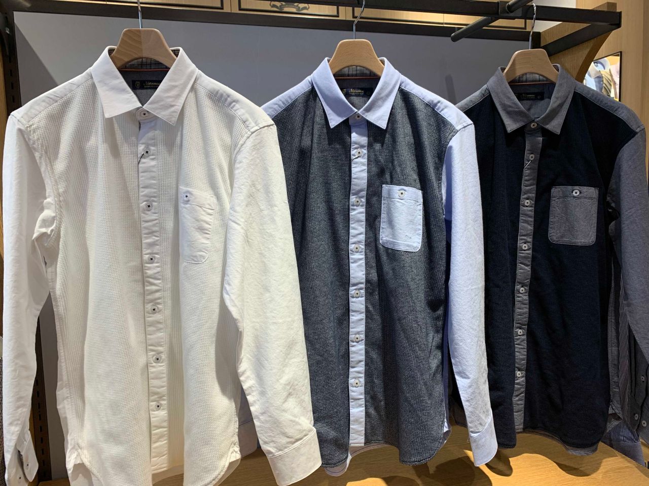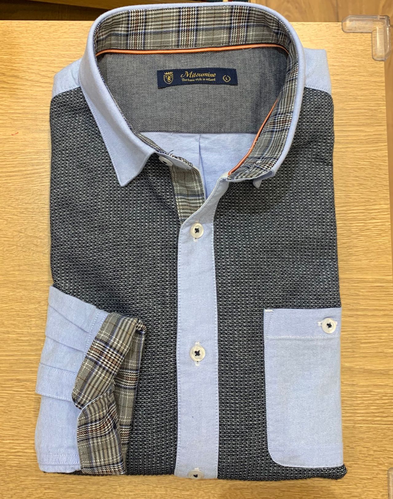 襟の内側や袖裏がチェックになっており、デザイン性のあるシャツになっております!
