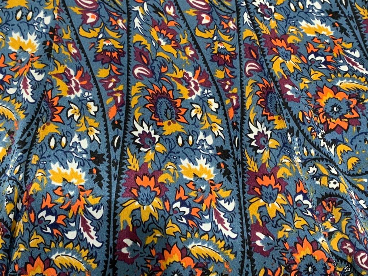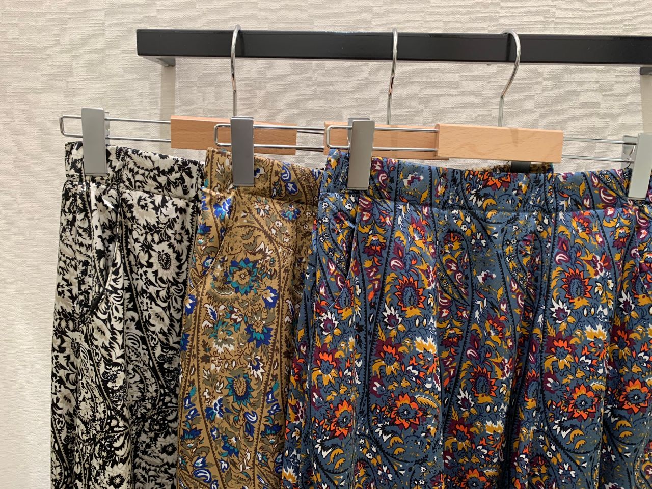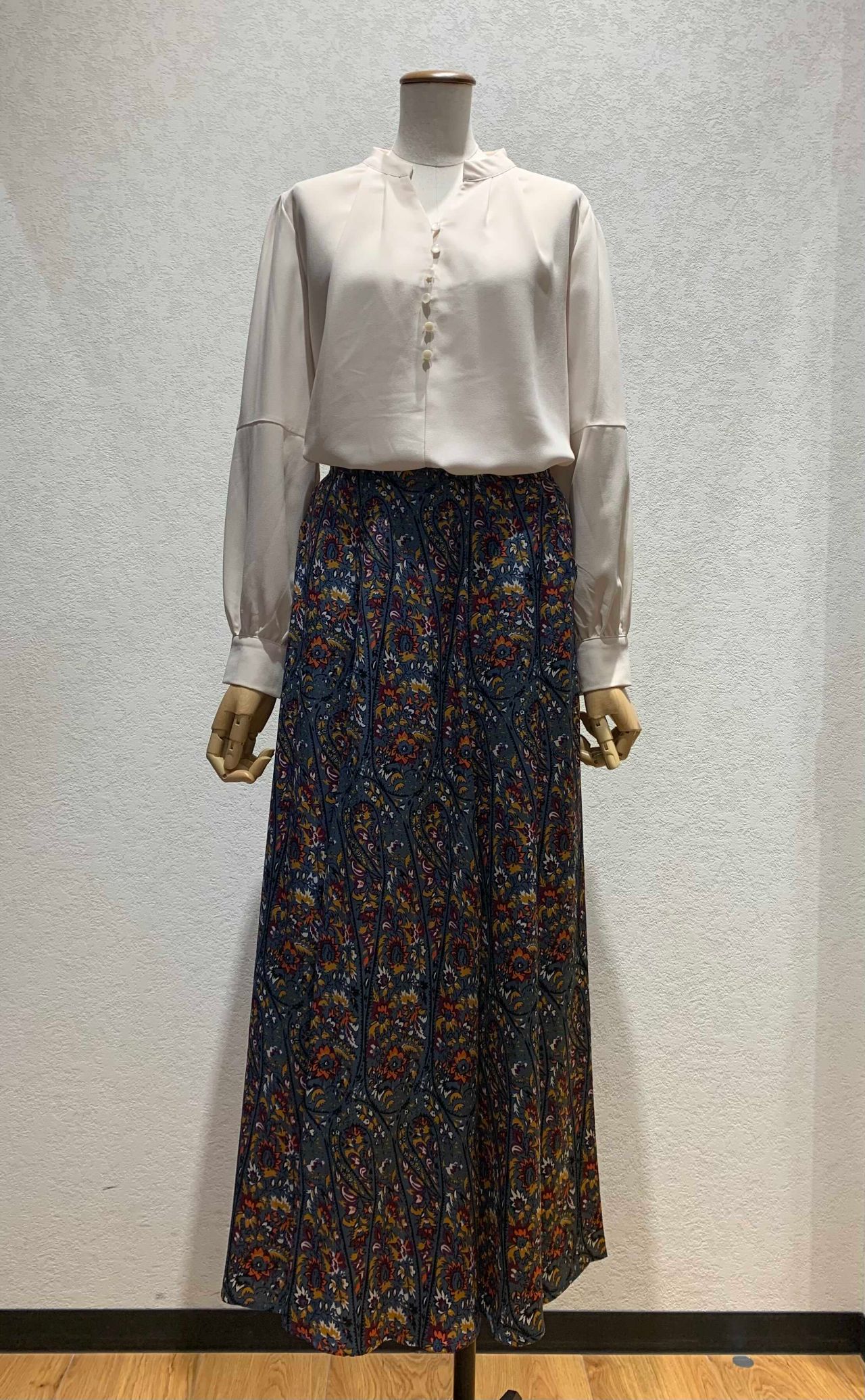 スカートはマーメイドラインが綺麗な長め丈です。秋らしいペイズリー柄になっています。
