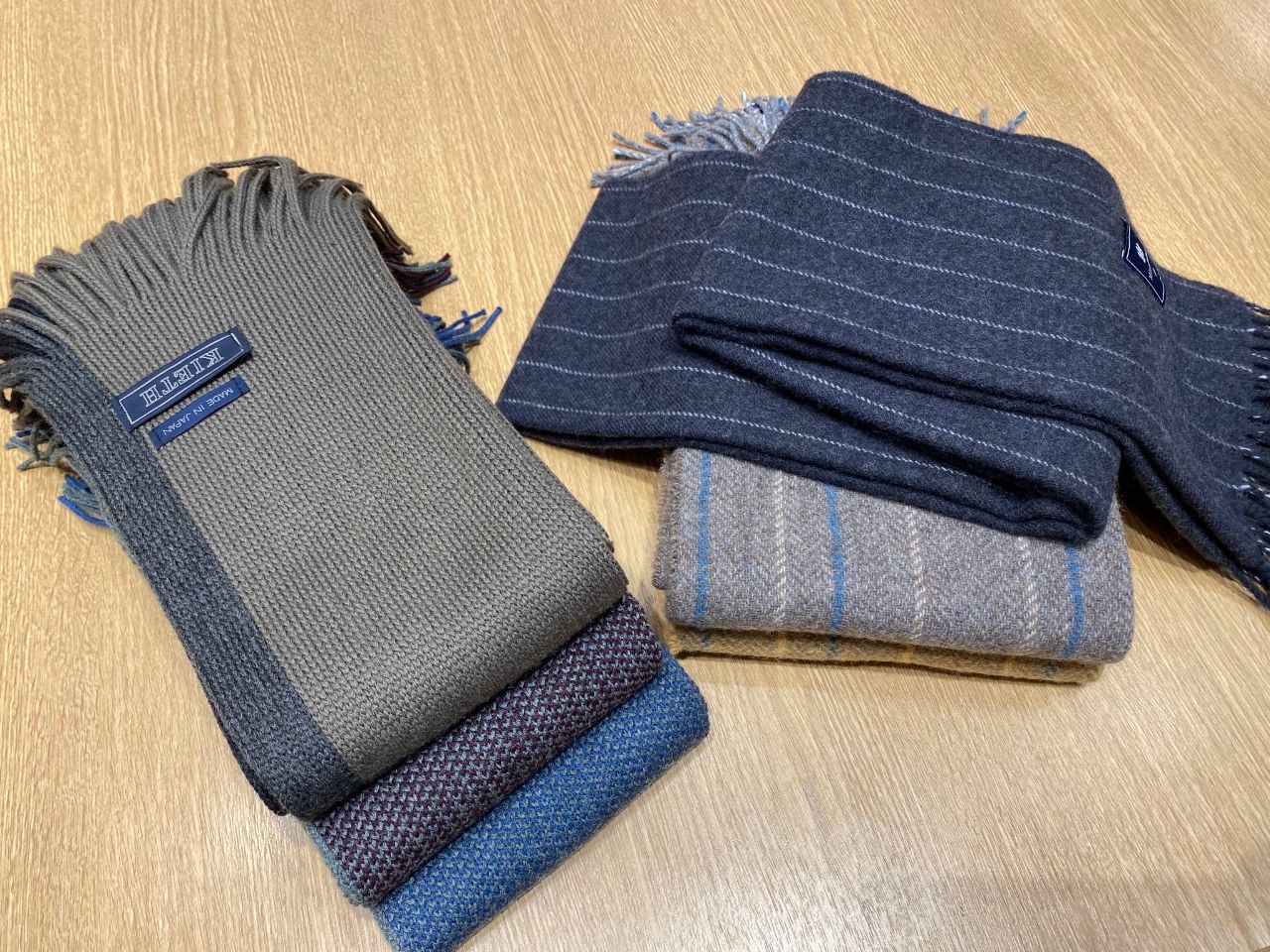 ウールマフラーもご用意しており、色が美しく、ストライプからヘリンボーンまで豊富な柄が展開しており、心地よく毎日愛用してもらえます!
