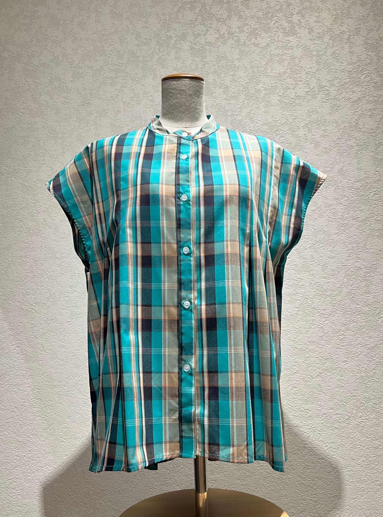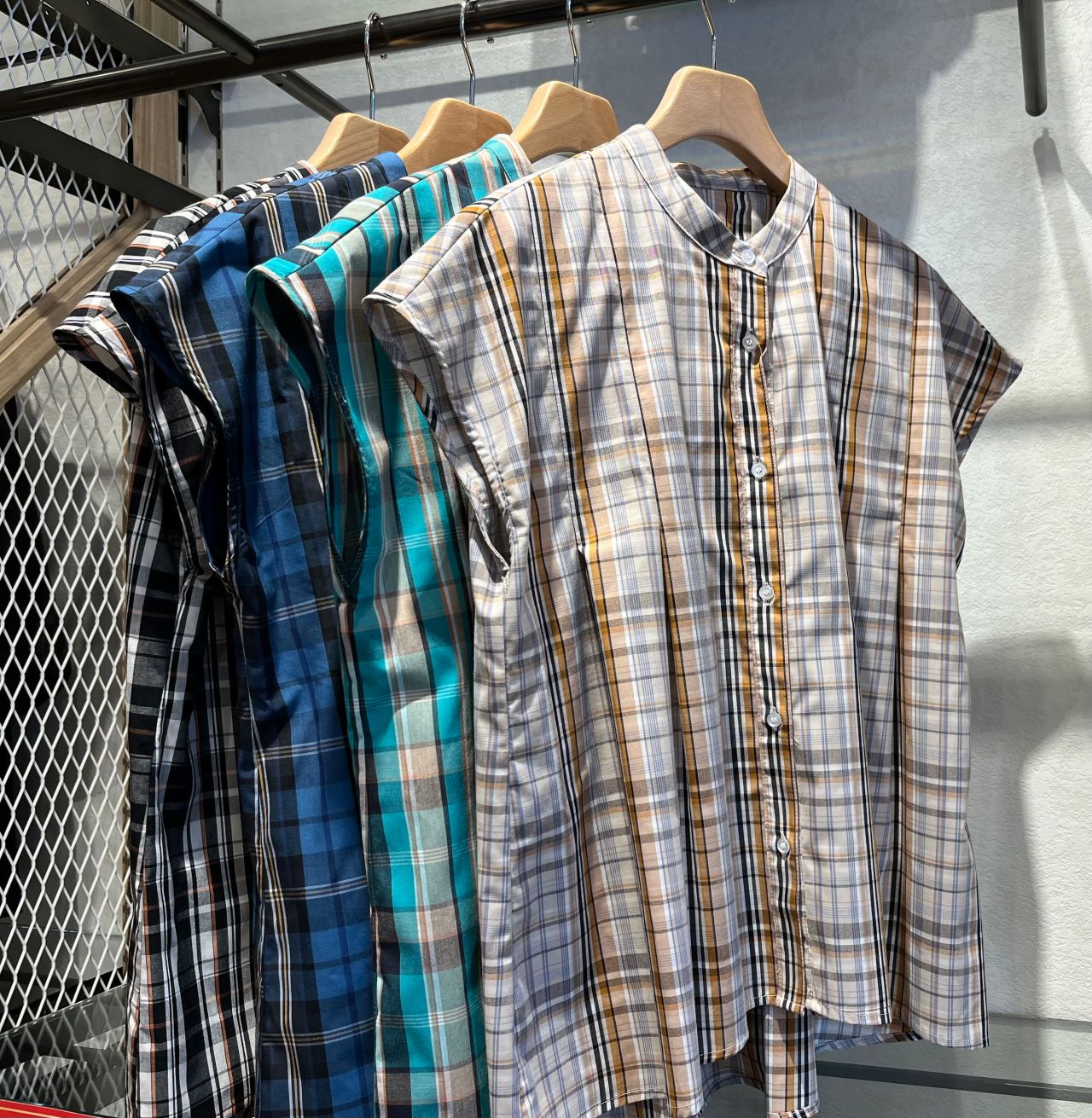 夏らしいチェック柄で、前のボタンを開けていただければ羽織りとしてもお使いいただけます!
