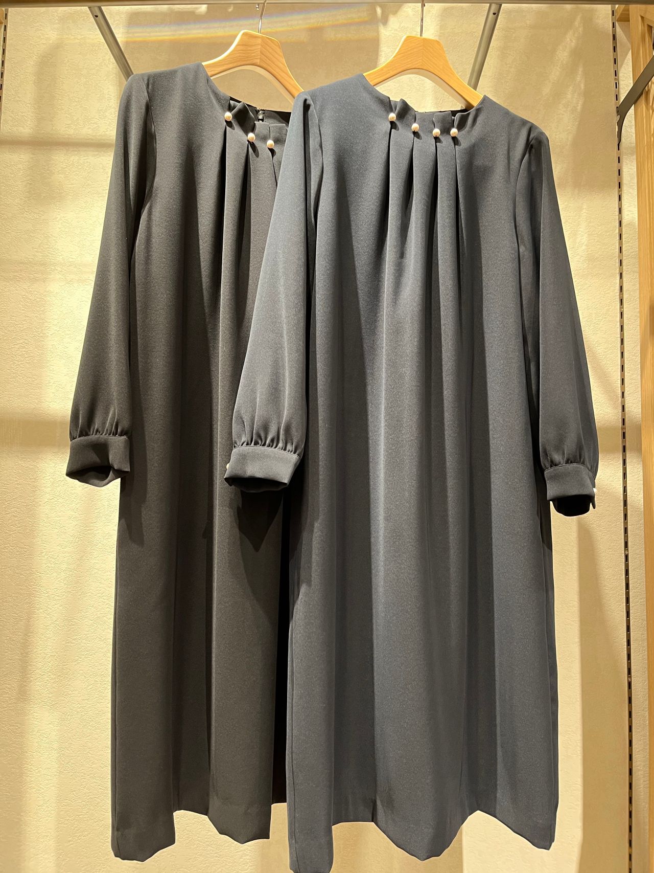 ストンと落ちるようなシルエットで広がりが出にくいワンピースになっております!