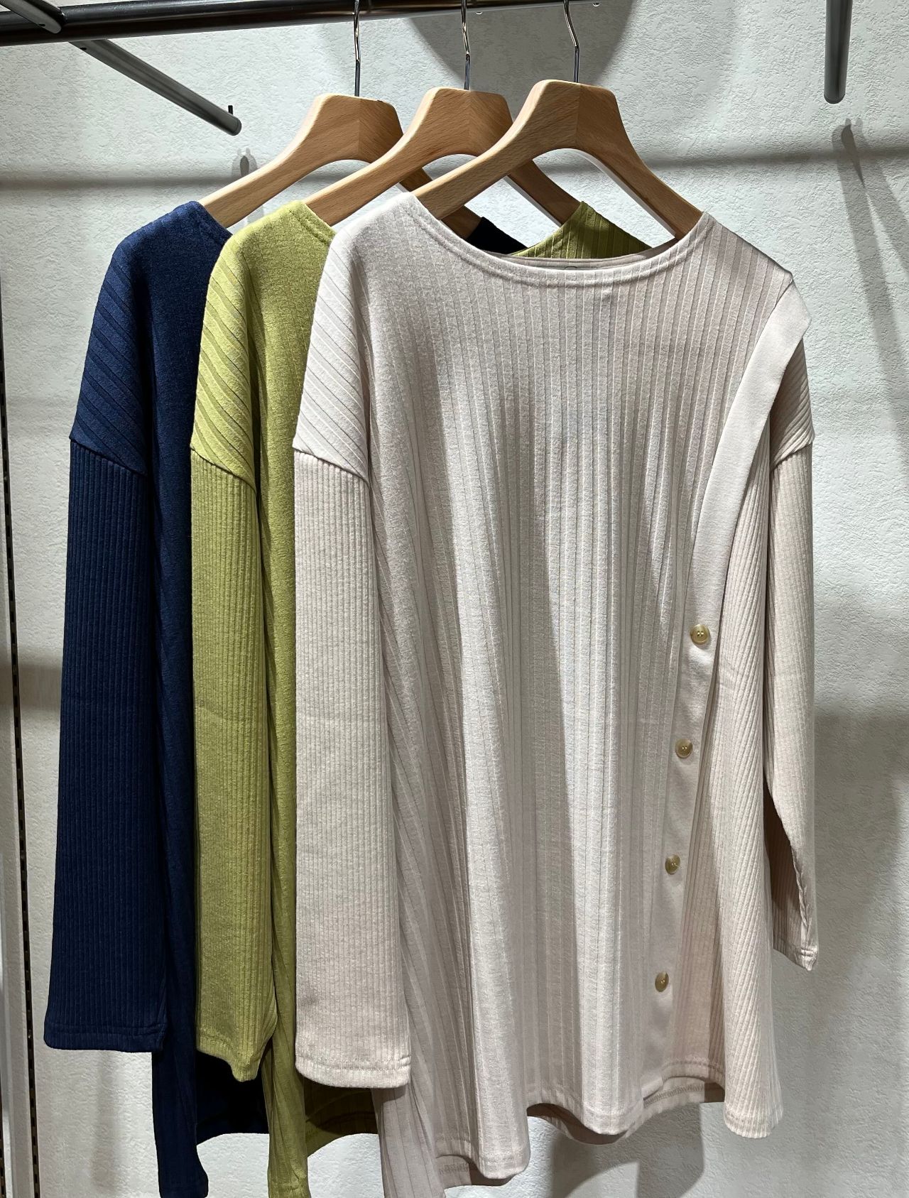 リブ切替 脇釦前後差チュニック