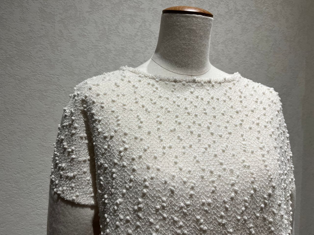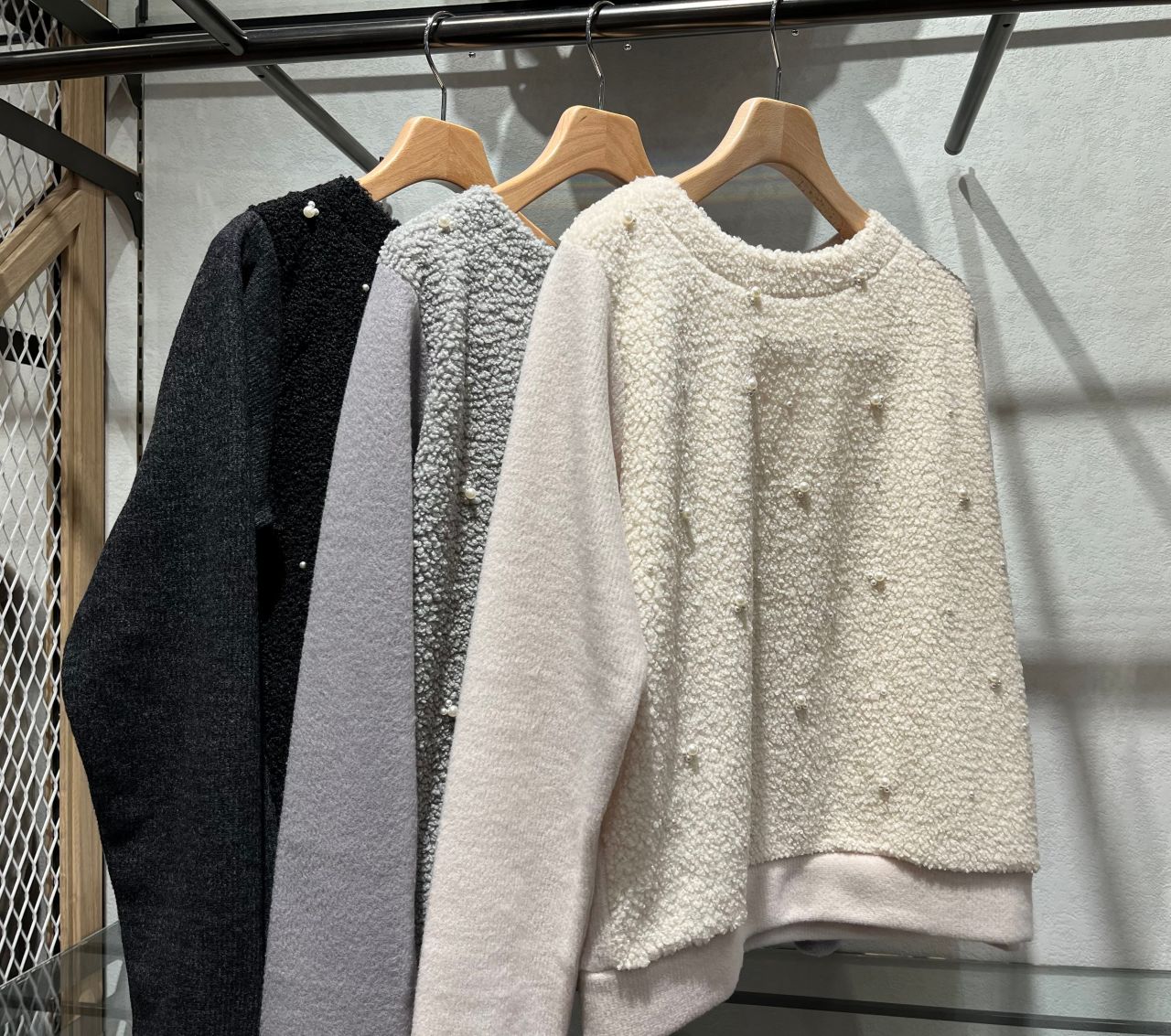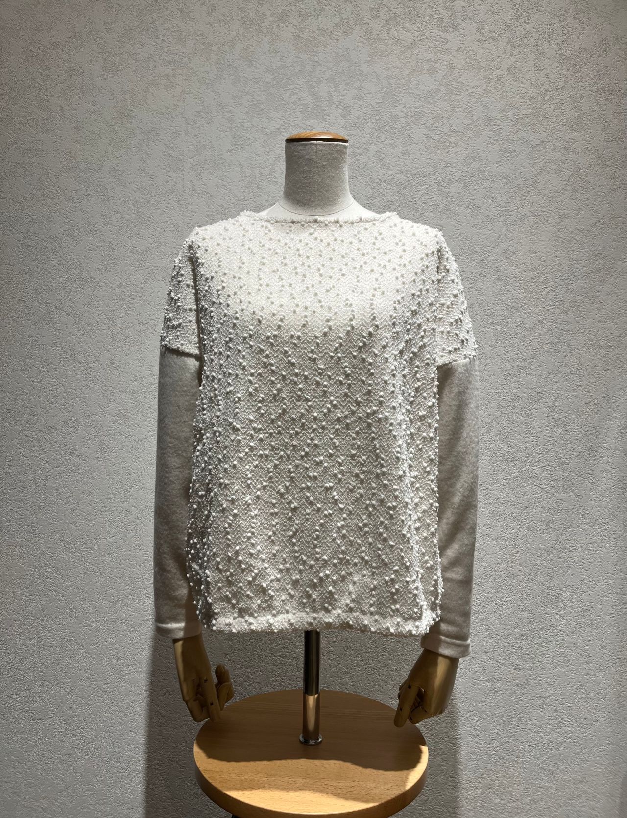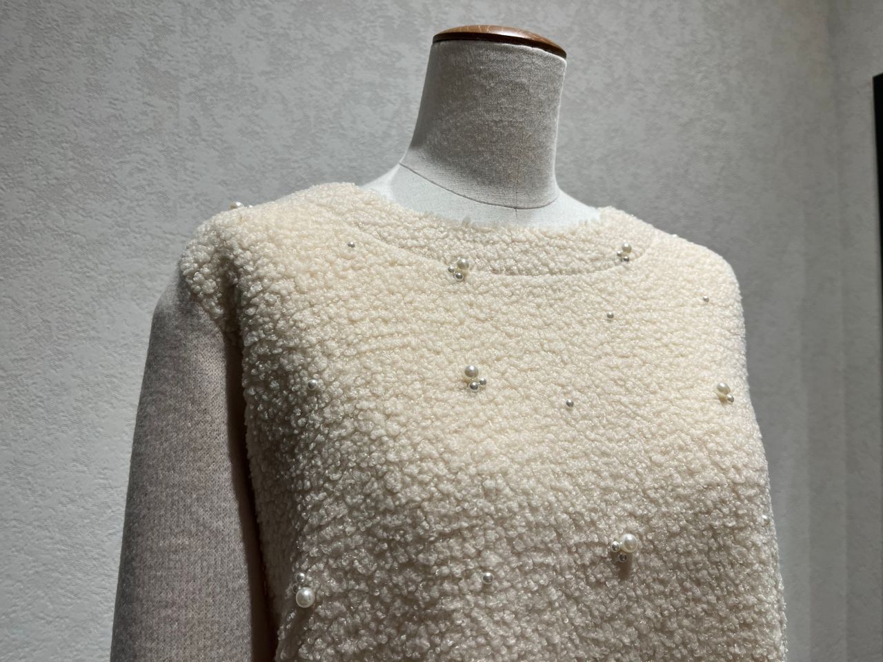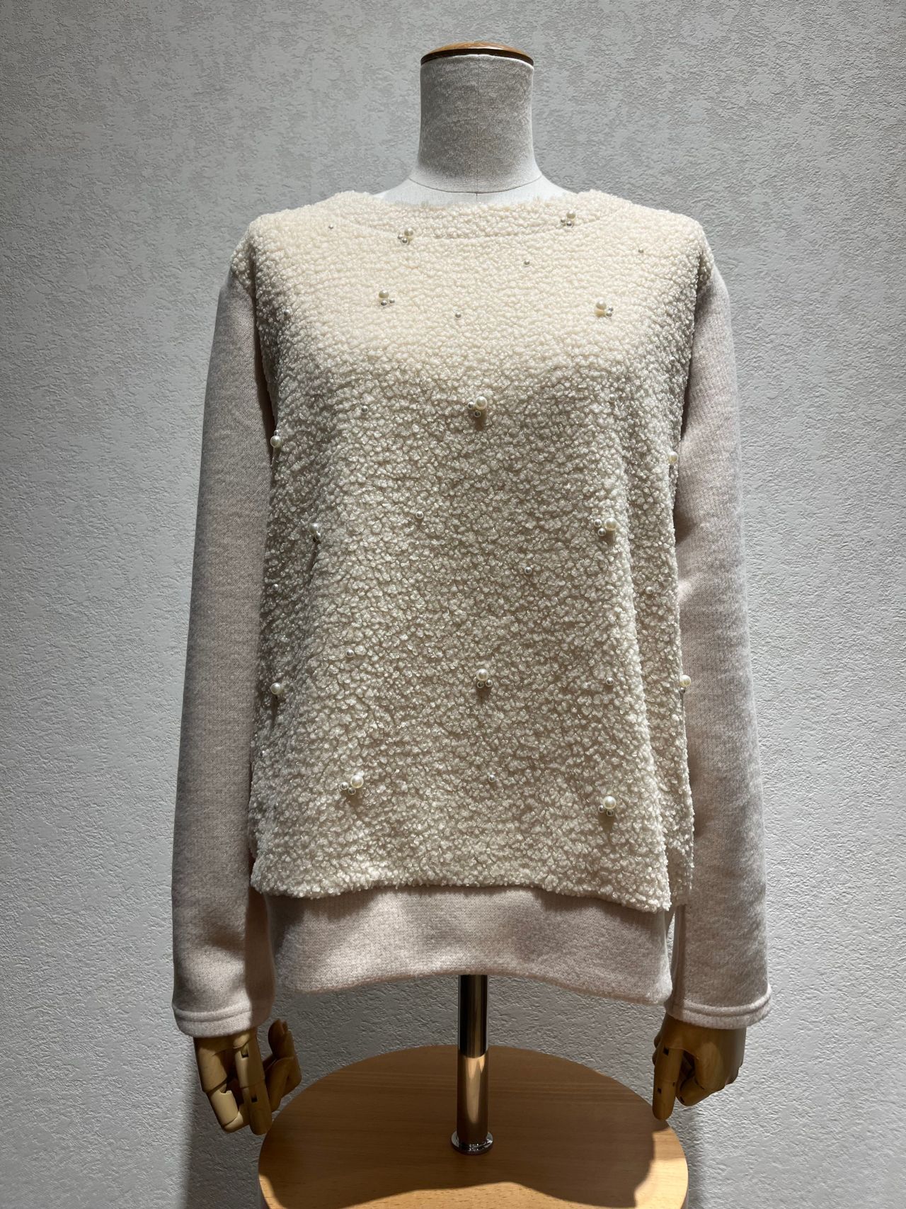 カーリーボア パール飾り付きプルオーバーカットソー
