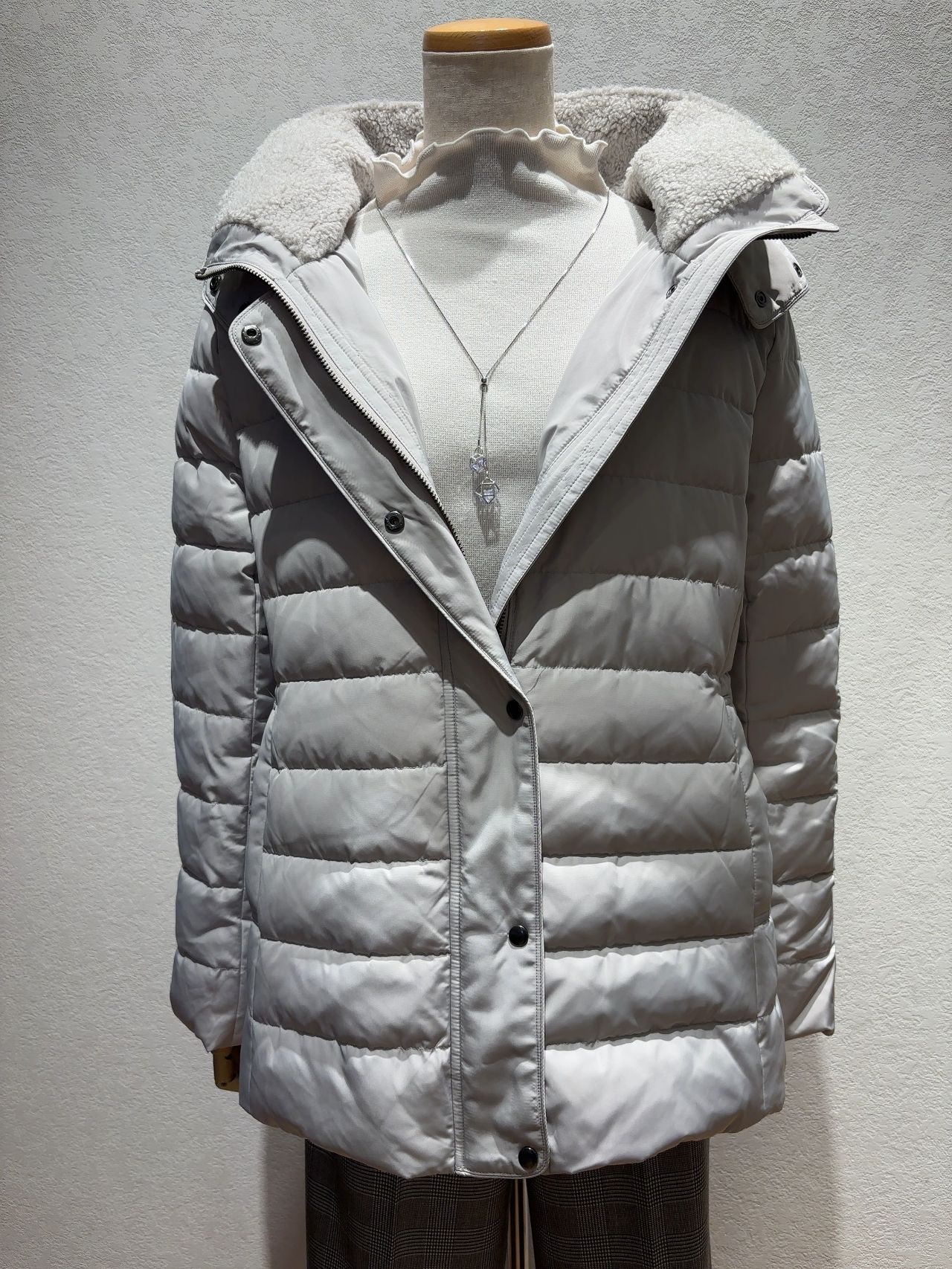 フード裏にフェイクファーをあしらった上品な印象を与えてくれるダウンジャケットが登場!