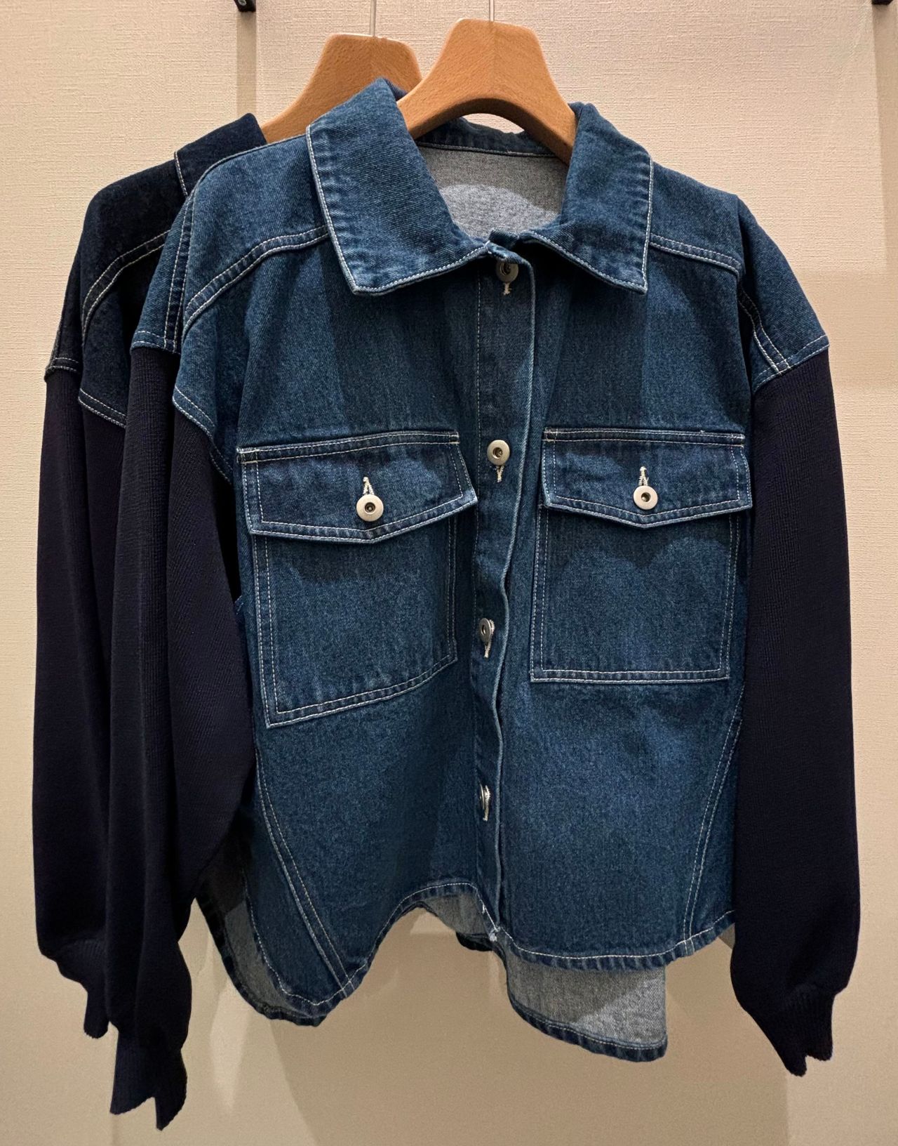 ★ニット素材を使用した袖が印象的なデニムジャケットです!